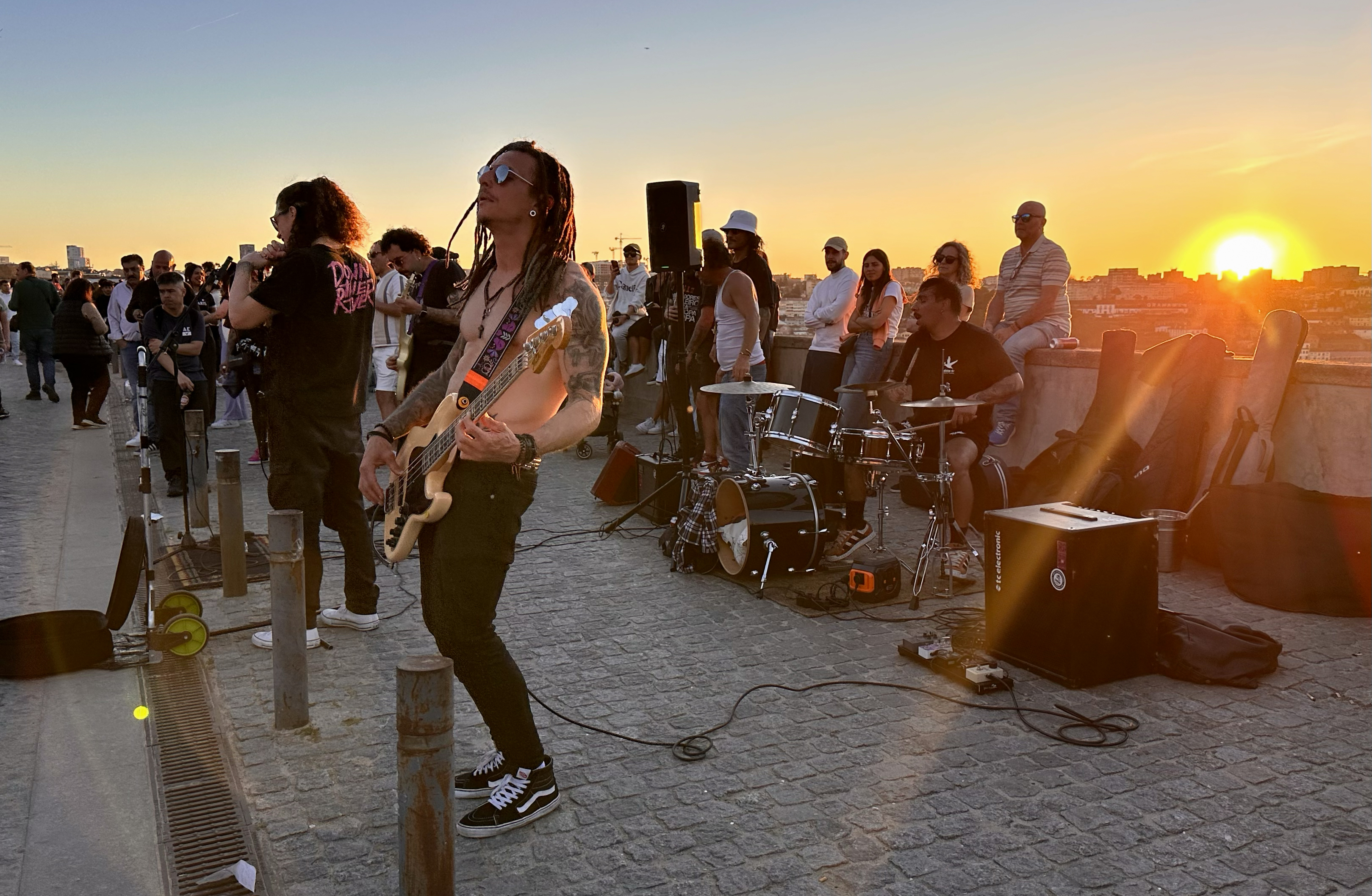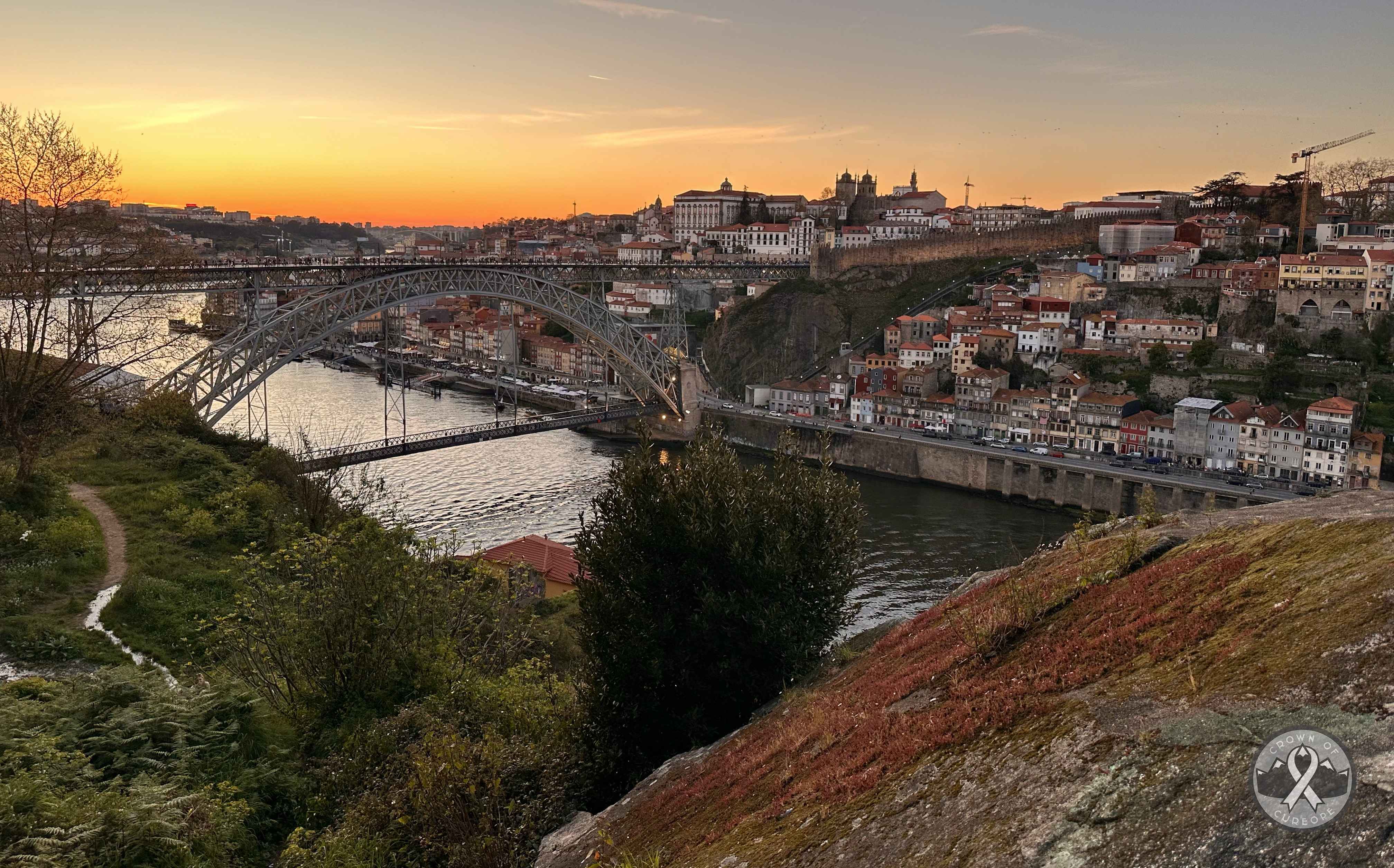 It was clear that Porto was happy to be having its first summer-like Saturday evening. The band was Down the River, and I had to look up their genre because they had some variety (from what sounded like heavy metal to Red Hot Chili Peppers): nu-metal and new rock. The crowd was loving it! I listened to them until the sun nearly set, at which point I started on a 5-minute stroll past the Mosteiro da Serra do Pilar, toward a random boulder I’d found on Google Maps. Only around 10 other people had the same idea that evening, so it was a quiet alternative to the area I’d left behind. Coming down from the boulder was a couple who had just gotten engaged, and they happened to be from NJ! 🙂
