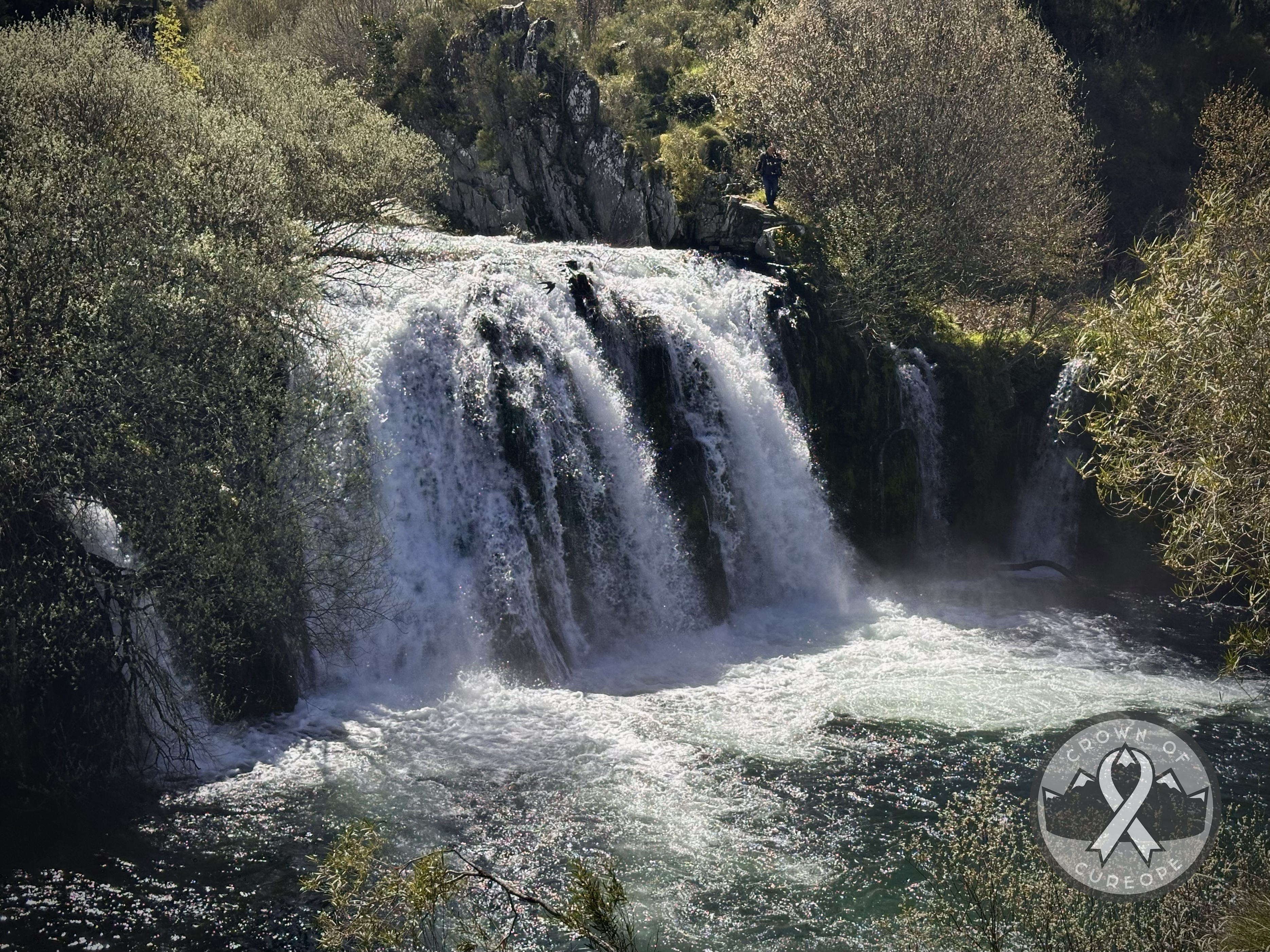 20 minutes later, I pulled into the small parking area for Poço da Broca (translates to Well of Broca, and Barriosa is the village it’s near). It fits fewer than 10 cars and was full, but I lucked out that a large group was leaving. I had the place to myself! There is a short path alongside the falls and other smaller offshoots to get closer to the water. There are two main viewpoints: one of the first falls that’s best from the stone ledge that runs alongside it (but careful of the drop-off there), and another viewing platform of the second falls a bit further along. Those are taller than the first, but still stand at only ten meters. It still looks beautiful and impressive!