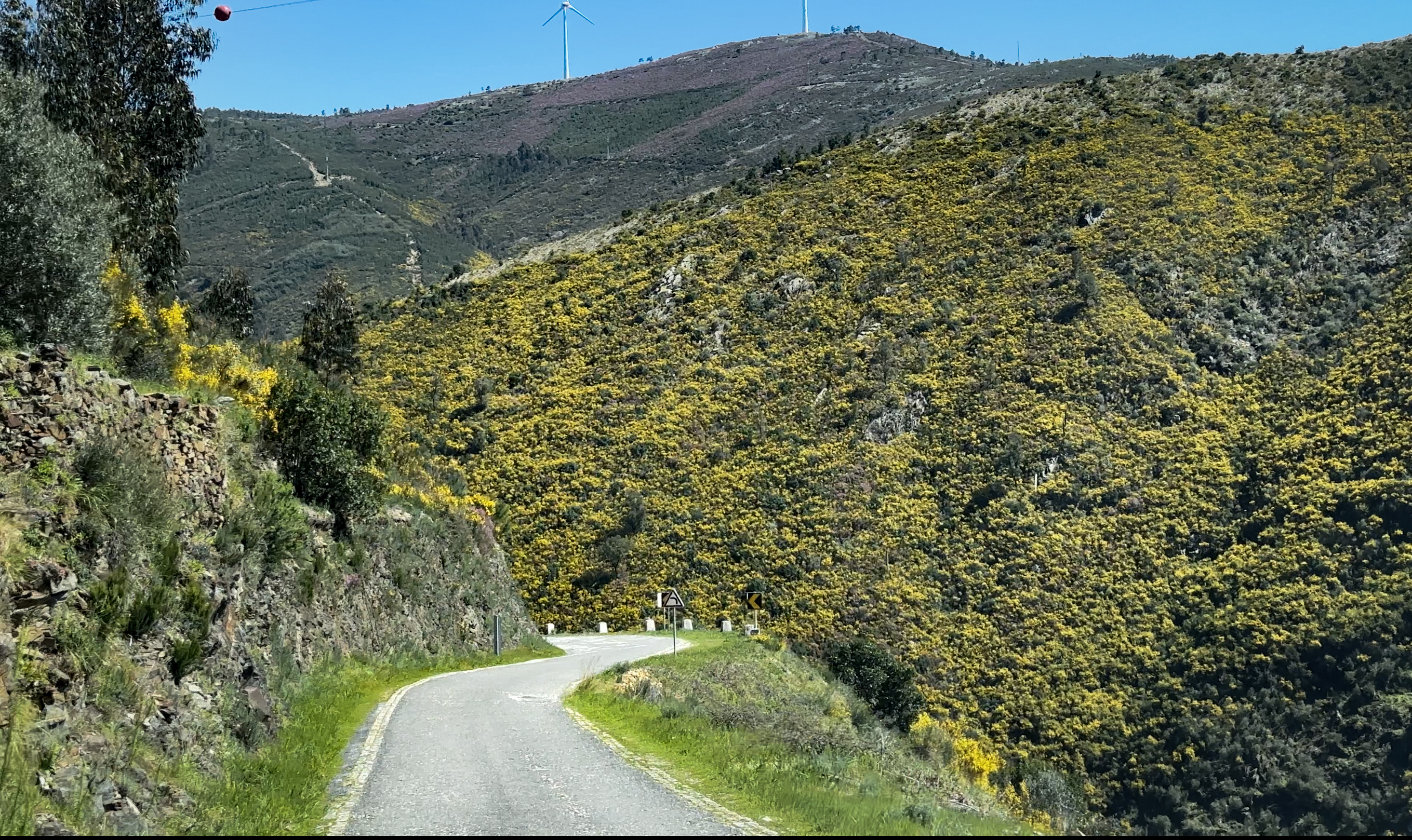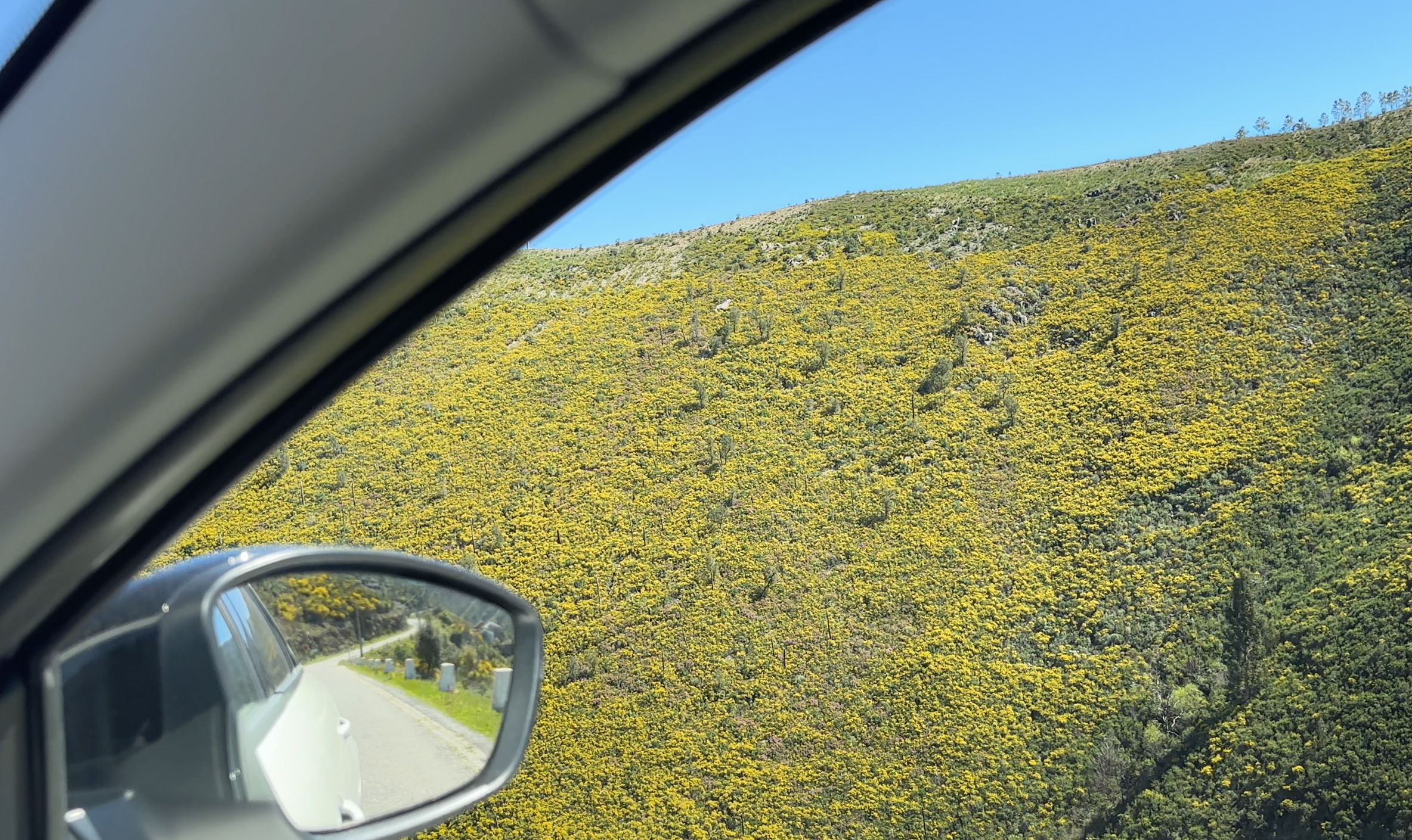 After a stop at the FREE bathrooms (always a win), I said goodbye to Serra da Estrela and began the 2.5-hour drive back to Porto. The views continued for the first hour of that drive, with unexpected blankets of spring wildflowers turning the landscape yellow: