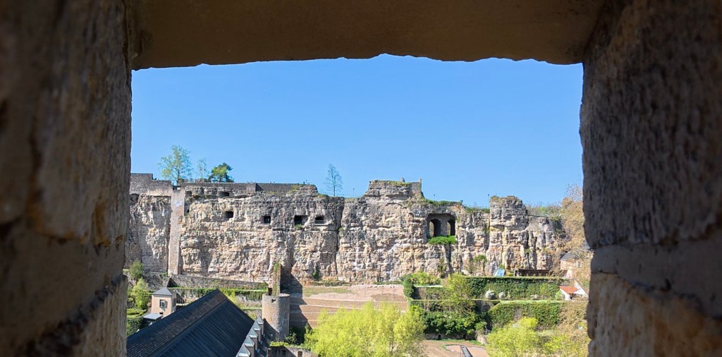 From there, I was trying to get to the Casemates du Bock, a series of underground tunnels built into the cliff I’d been looking at from Neimënster, which used to be a key part of the city’s defense system. It’s also a UNESCO World Heritage Site (since 1994)! It looked like I should be able to pop right up to them, but it was a ~10-minute walk looping around the back of the cliffs to arrive on the top, where the entrance is. There are set hours, and tickets must be purchased to enter (10 euros for adults, 8 for students and seniors, 5 for children 4-12, and free for children under 4). Given that I was there fairly close to the closing time, and it seemed to be really crowded, I decided to just walk along the top. Up there, a man with a cute dog was flying a kite. That’s in the Instagram highlights. Anyway, here’s some more info on this interesting spot if you’d like to check it out for yourself!