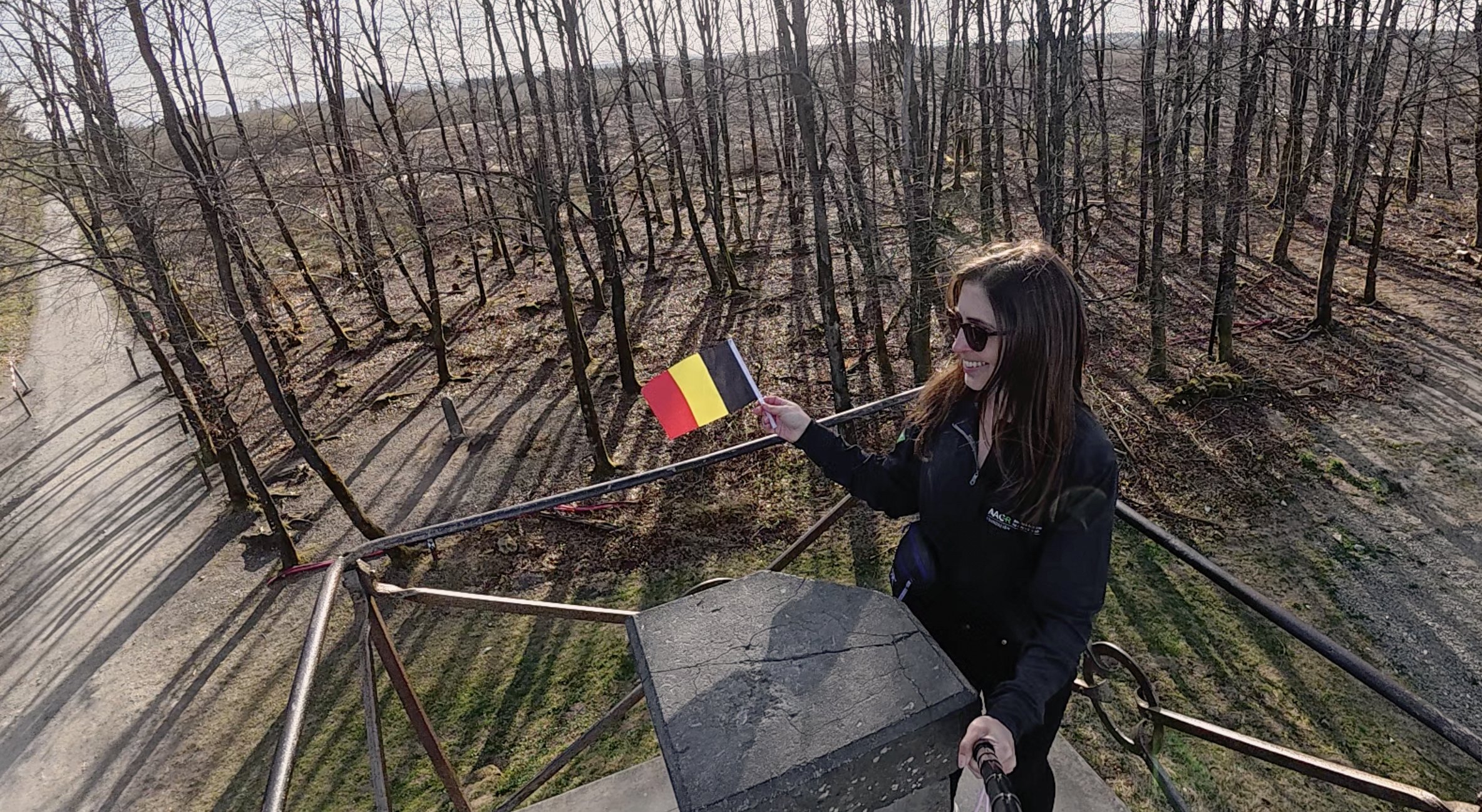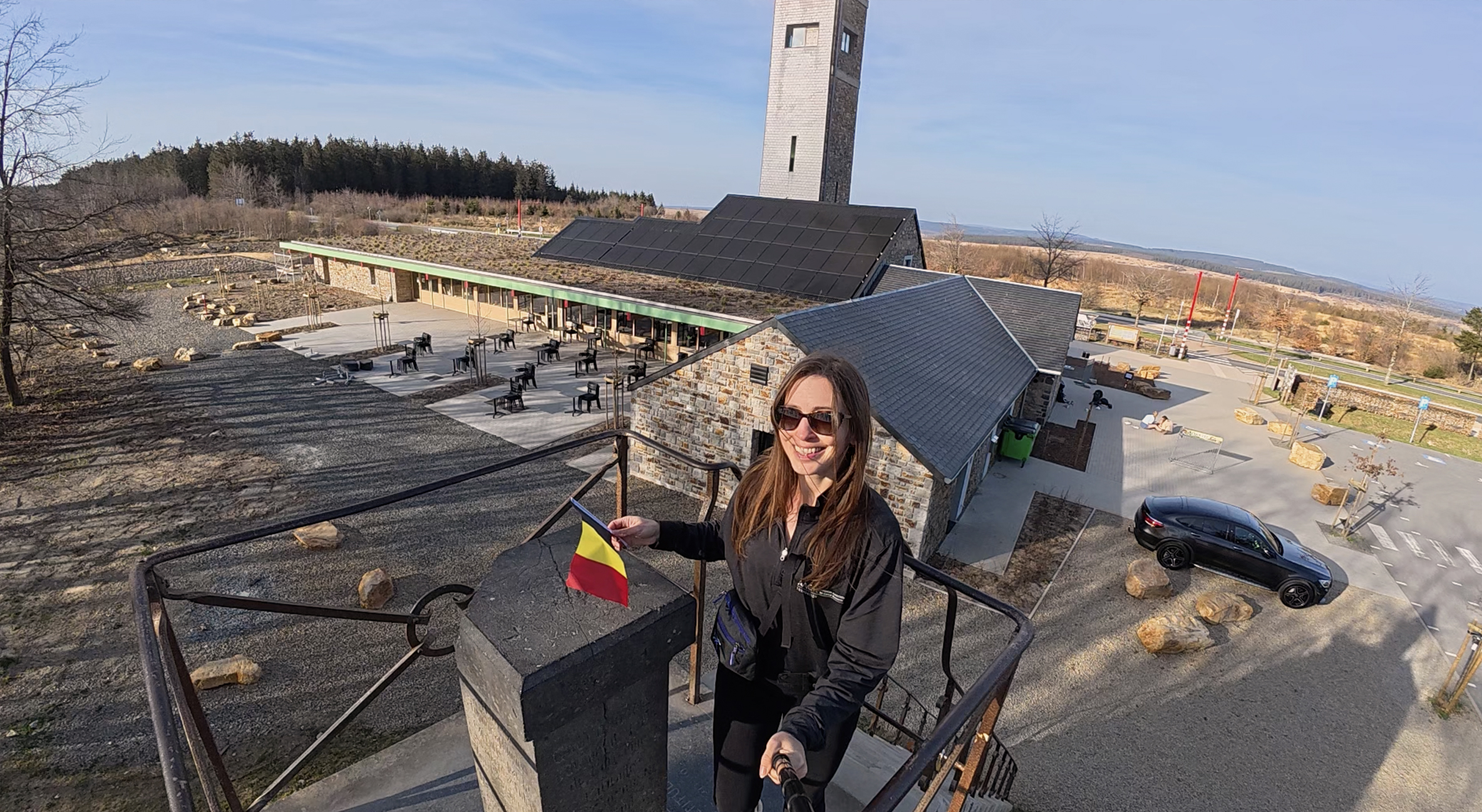 The highest point in Belgium, Signal de Botrange, can be reached in just 45 minutes from the highest point in Luxembourg. It has its own dedicated parking lot with a restaurant (and toilets, if they’re open…they were temporarily closed when I was there, along with the restaurant). It was surprisingly windy here, so despite multiple attempts, I did not manage to get an adequate photo with the flag properly displayed. At least the AACR logo is visible on my shirt! 🙂 Also, please ignore my footwear selection…I’d be standing on a 3-country border with Germany later that day.