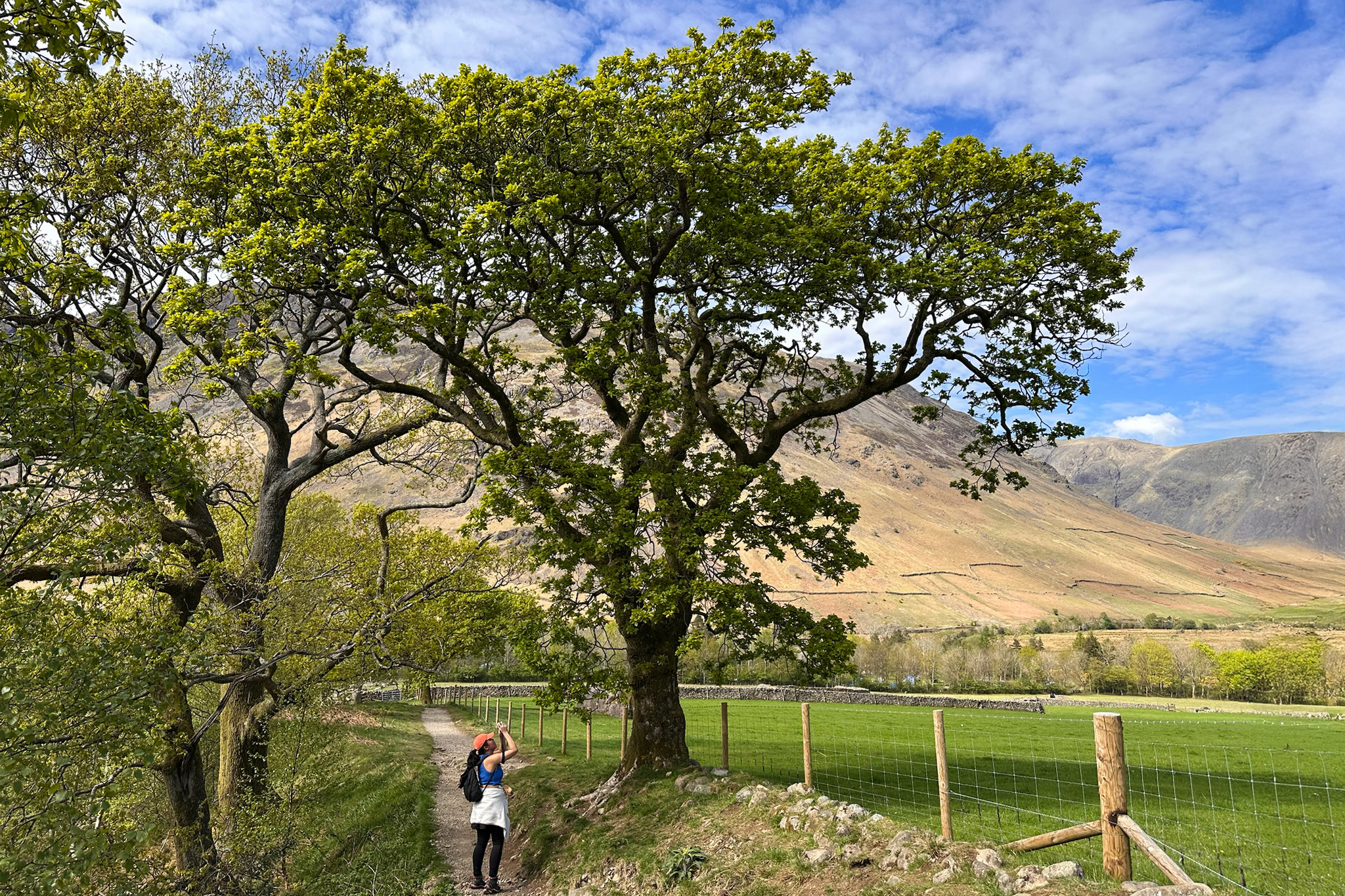Not bright and quite early, we unzipped the tents and tended to our ailments (taping our aging knees, mainly). The drive from this campsite to the trailhead parking at Wasdale Head was an incredibly scenic, 30-minute drive, of which half was spent behind a car going <20 mph along Wast Water. At least this was the most beautiful part of the drive! This is in the England highlights on Instagram.
