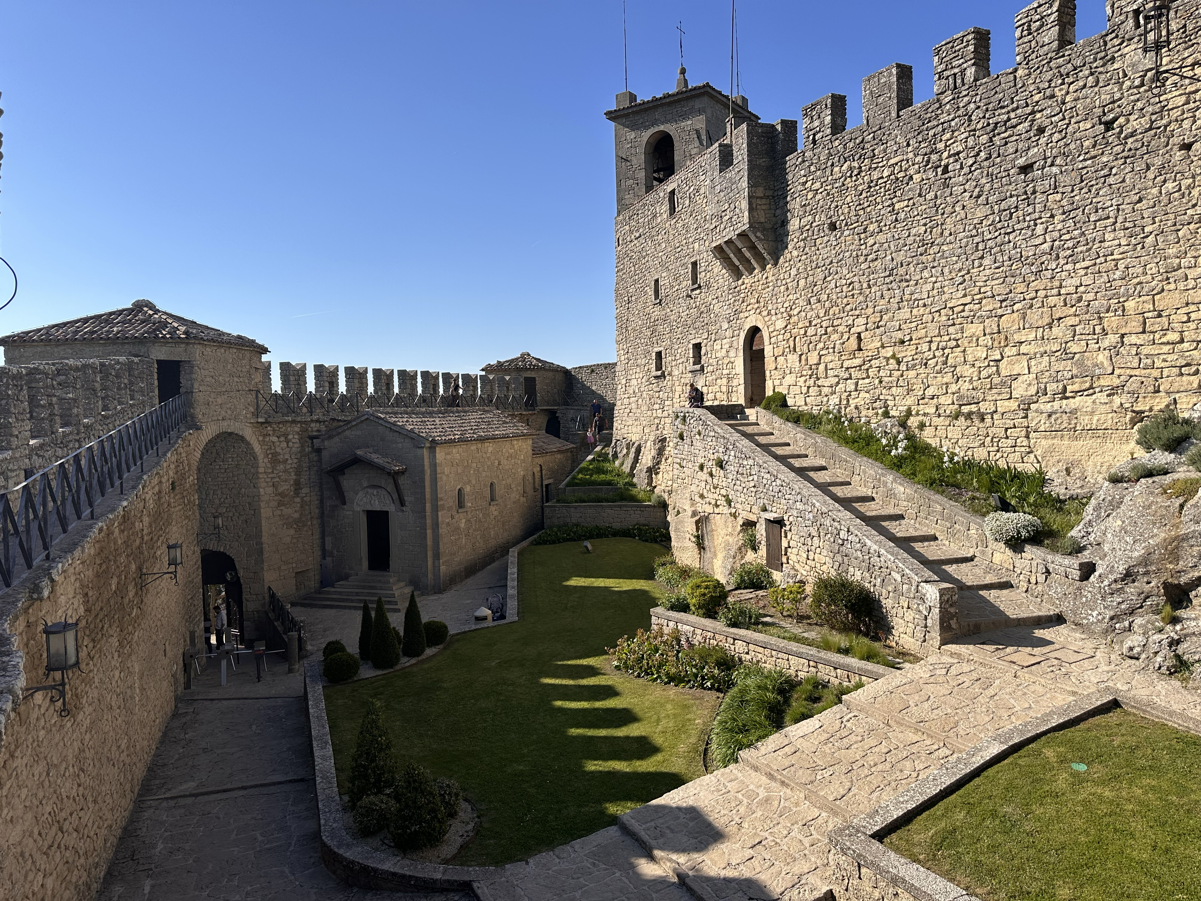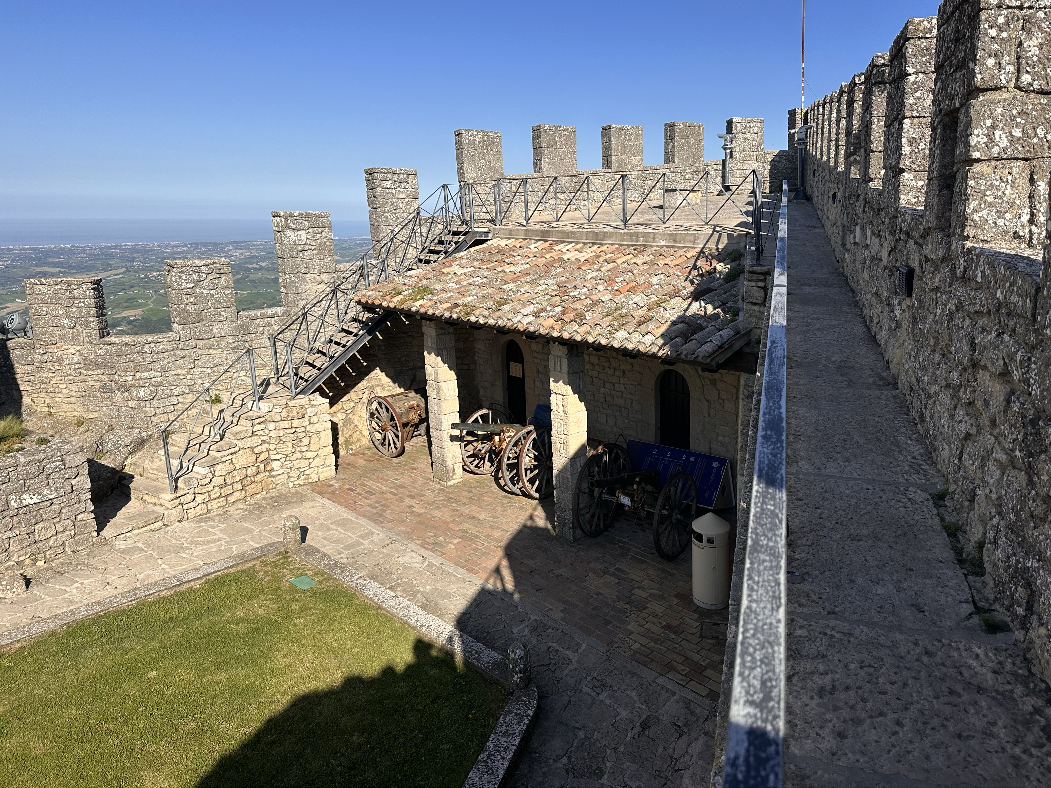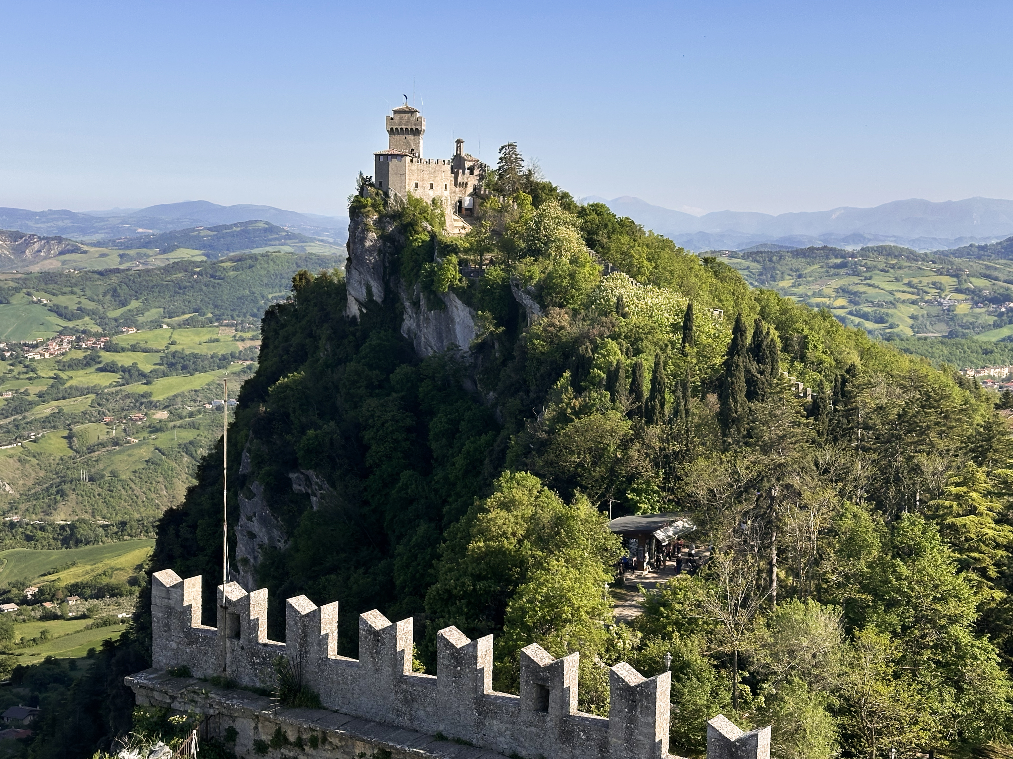 The alternative, scientific explanation is that San Marino was once underwater. Massive earthquakes caused large rock piles to slide from around 50 miles away toward the Adriatic Sea. The area is generally flat, but some ‘rock piles’ like this emerged from that era. You can even see some in the distance from various lookout points along Monte Titano! I still find the mythological explanation more interesting. Anyway, back to 2025.