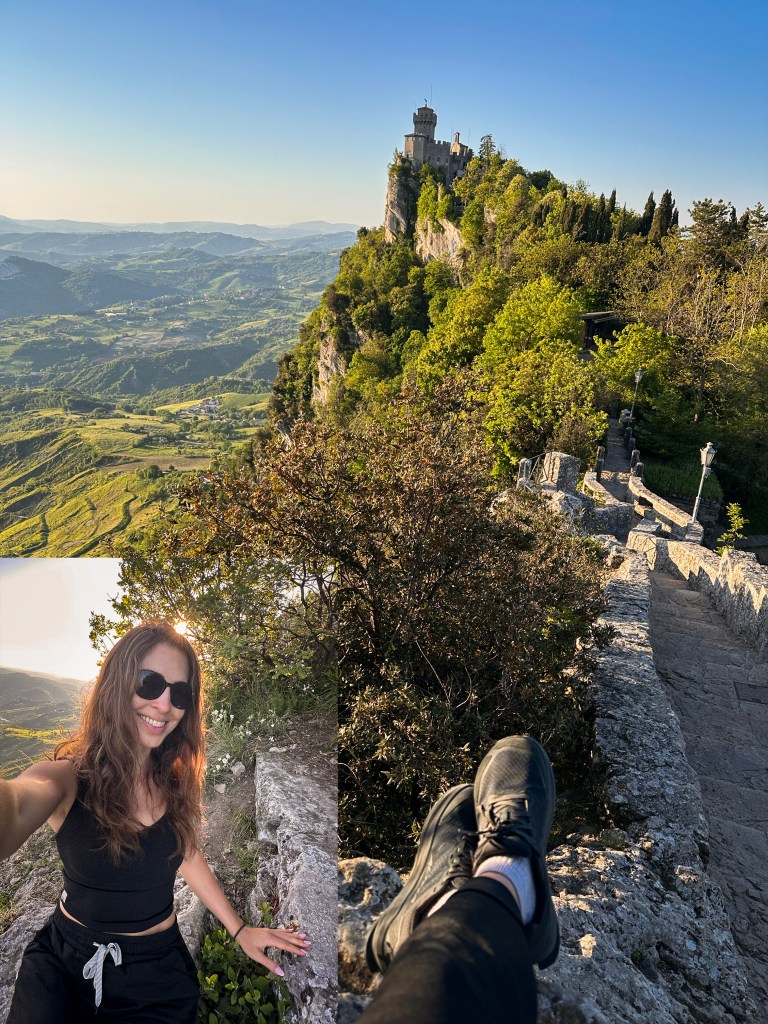 Can you see the spot where the summit photo was taken? If you’ve seen my Instagram highlights, can you spot the tower where I was opening the windows with the chains? What about where you can walk the walls under the highest tower of the Guaita in the distance (where’s Wall-do?)?