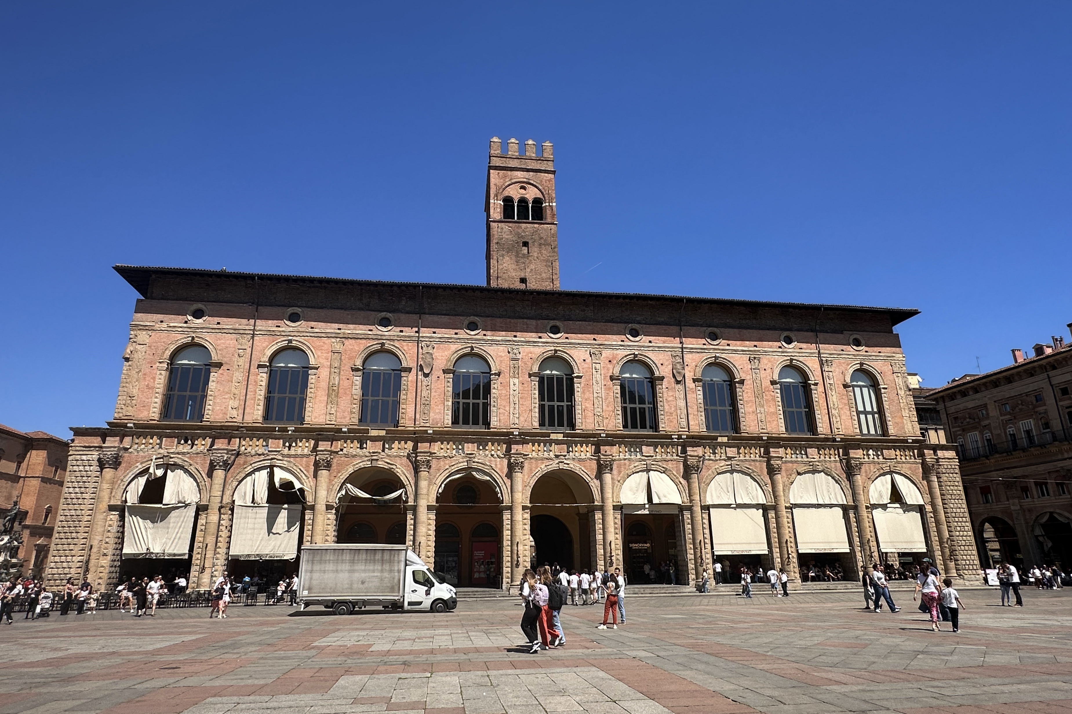 I set off on the “6-minute” ride to the Piazza Maggiore. With construction and other chaos, it was more like 10. Plus, it took a few minutes to find the bike, unlock it, and adjust it.