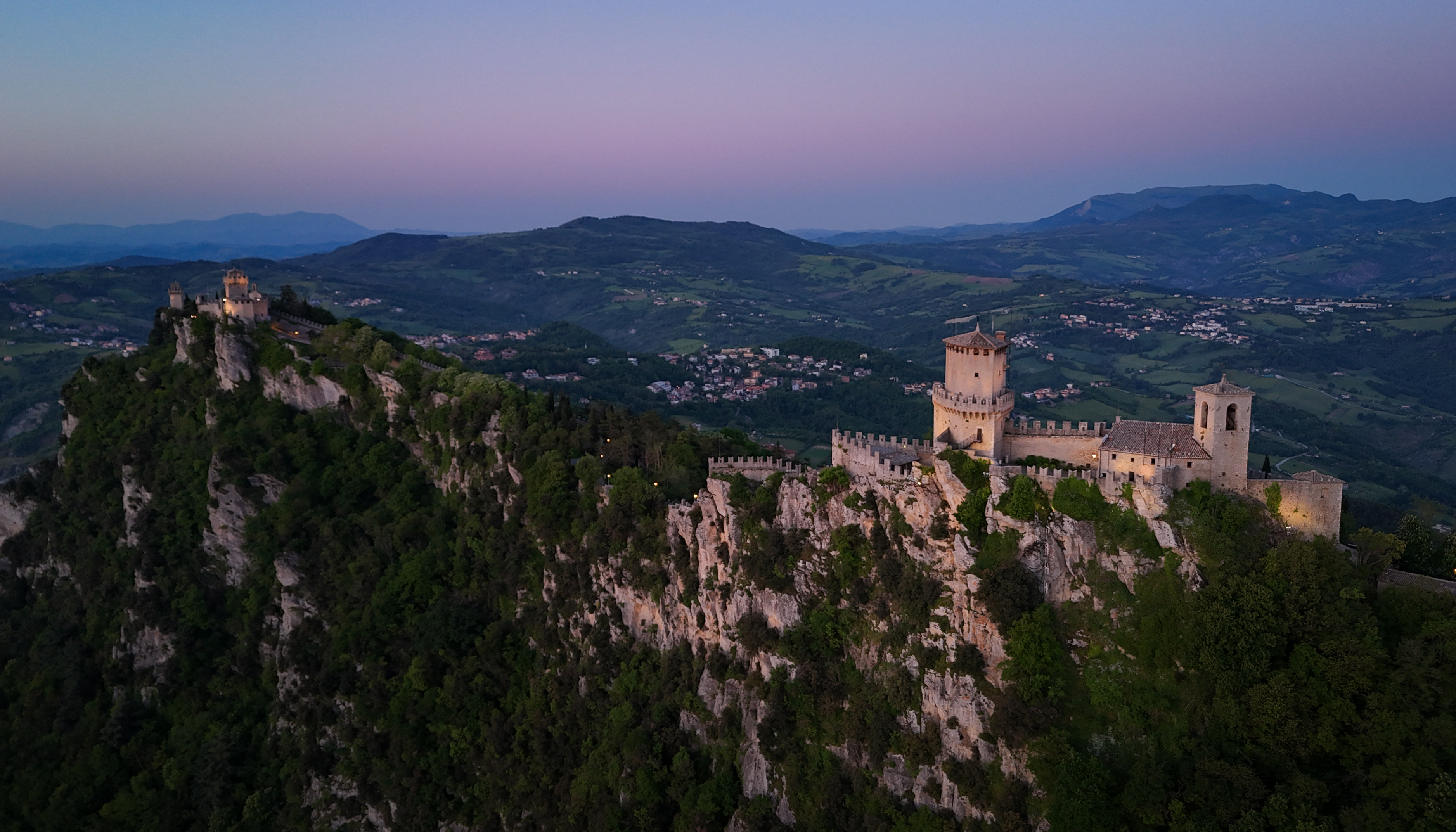 Guaita (1st tower) on the right, Cesta (2nd tower) in the distance on the left, Montale (3rd tower) tucked just behind Cesta