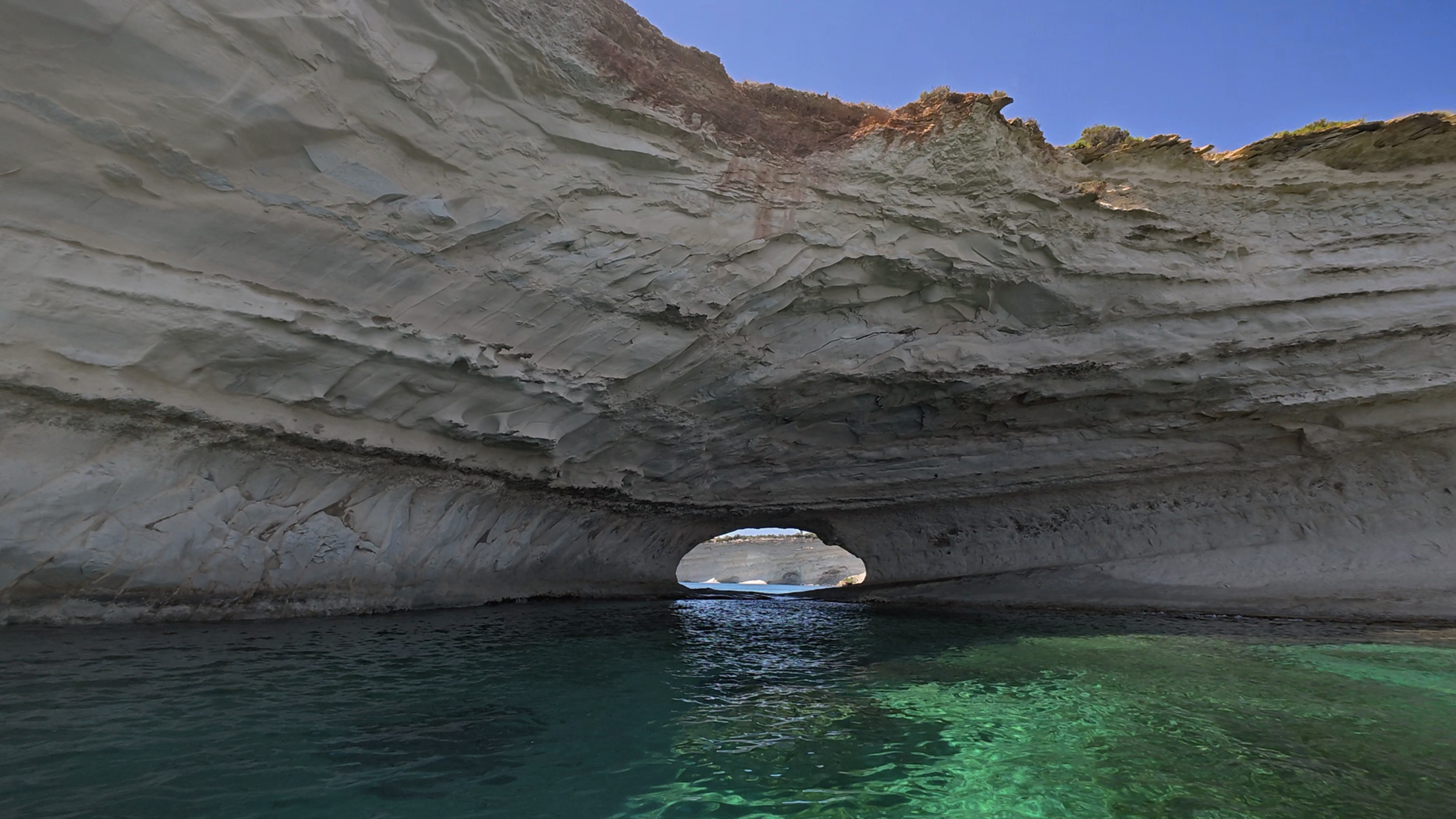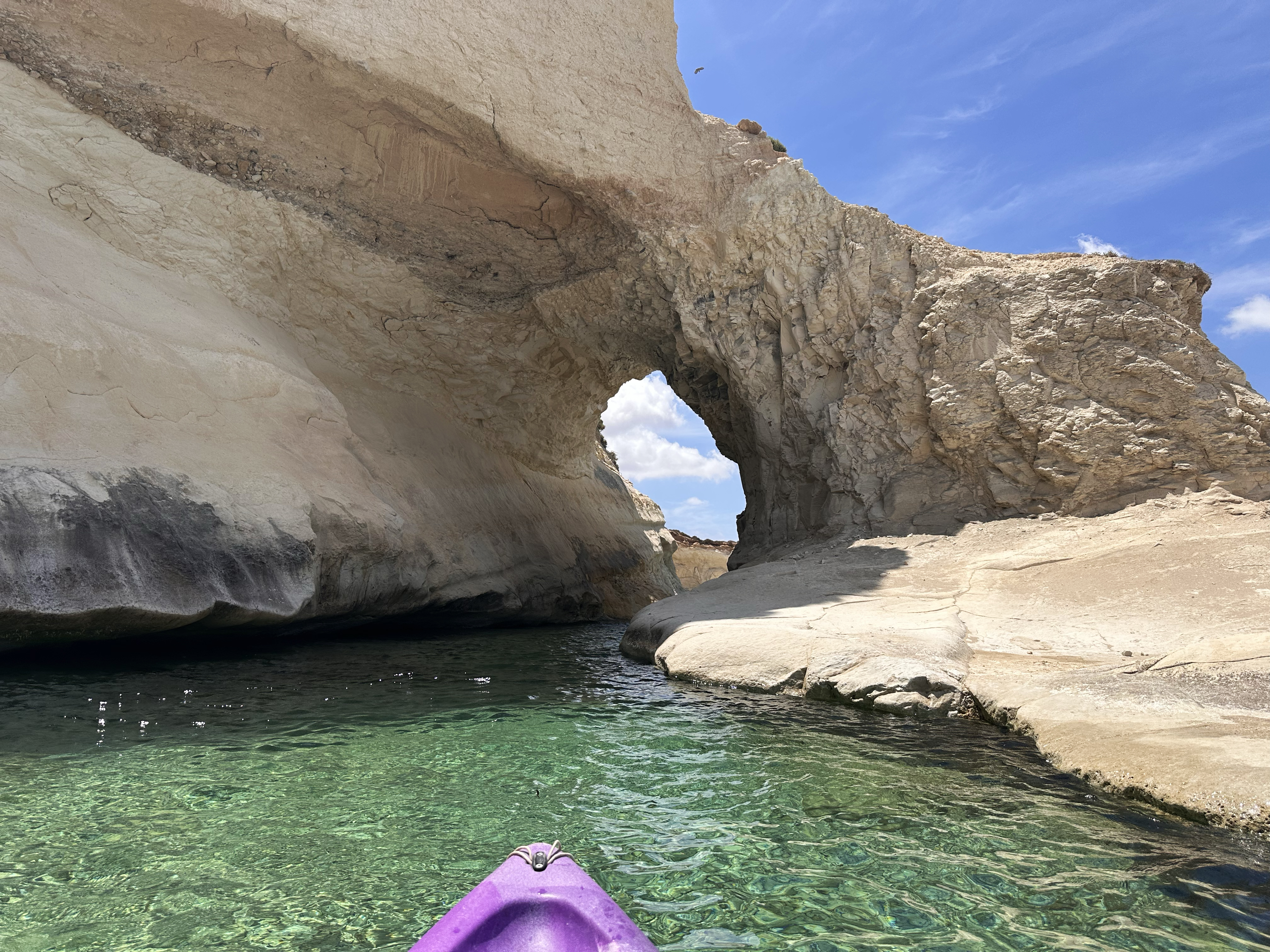 I spent about an hour there, then reluctantly started paddling back. I wasn’t sure if the currents would change substantially or conditions would worsen (plus, I’d told them 2-3 hours), otherwise I’d probably have stayed longer. I passed through that first cave/arch on the way back again, then pulled up on the boat ramp a few minutes past the 3-hour mark.