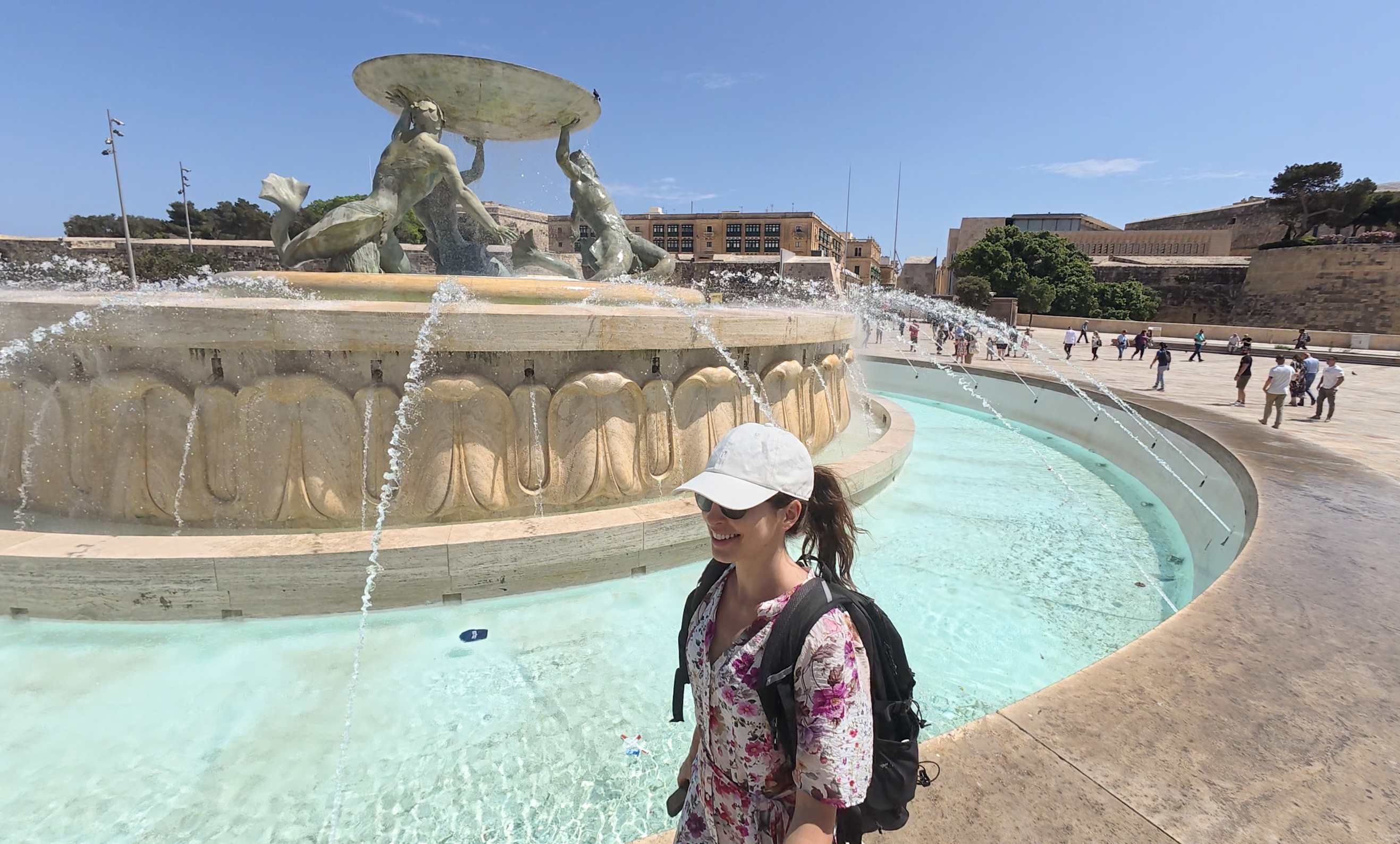From there, I walked a few minutes down a nice path (the Ġnien tal-Maglio or Maglio Gardens, and “The Mall”) to the entrance to Valletta, with the large Tritons’ Fountain out in front. It’s been around since the 1950s and depicts three bronze Tritons (sea gods).