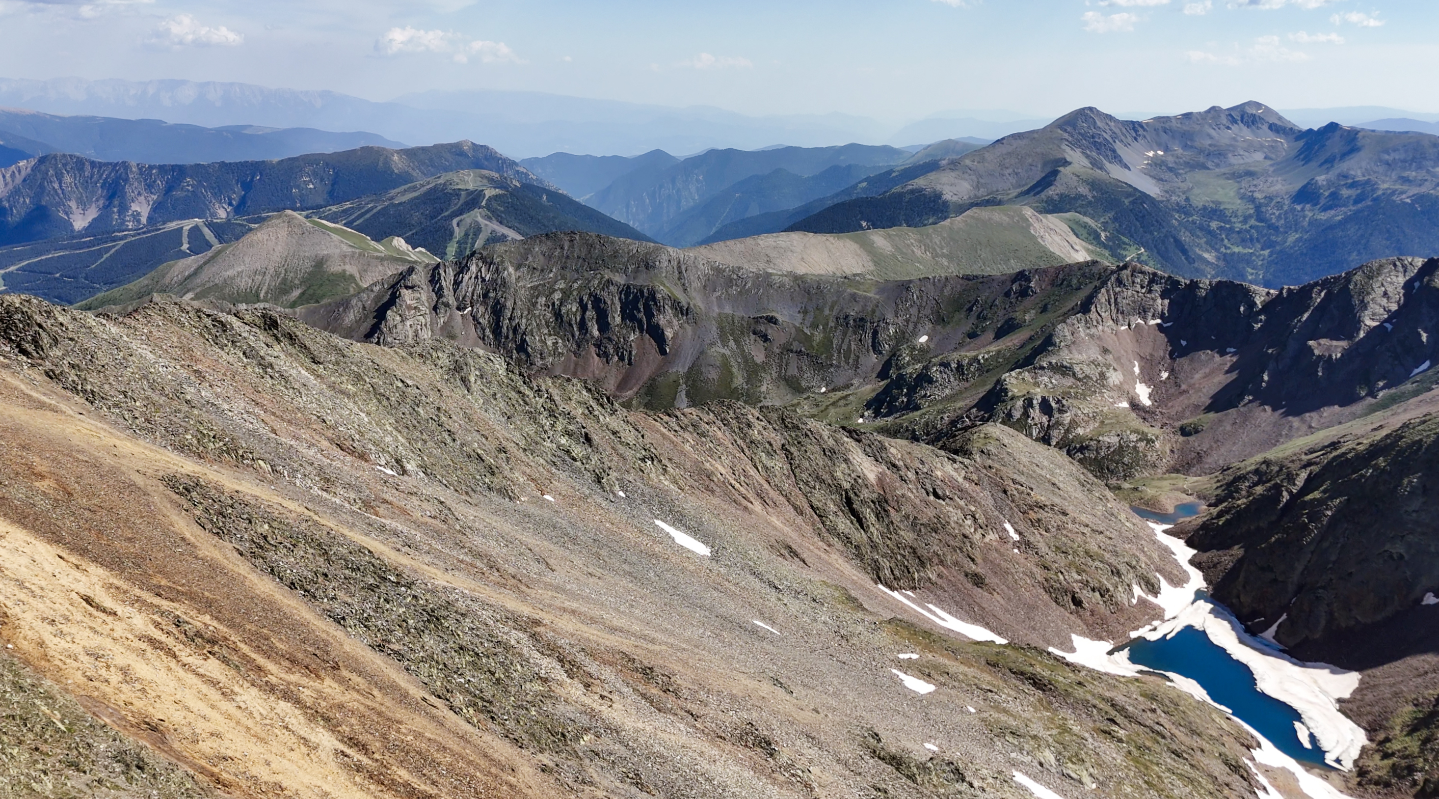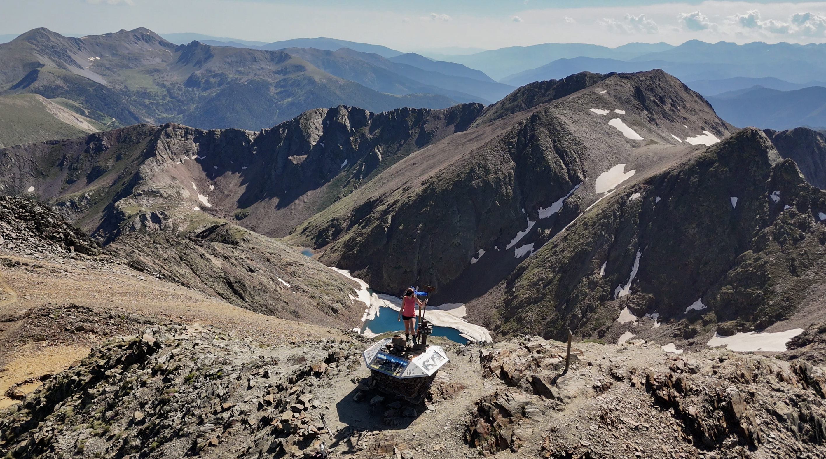 It was great to finally be back up there with the AACR flag, after the lost bag chaos on the previous two peaks. I’m happy that neither that flag nor my drone flew away up there. The drone really tried!! For some reason, I didn’t really register the altitude of this peak at the time I was up there, despite mentioning it multiple times in this blog post. So, I couldn’t really figure out why my drone seemed more out of shape than me up there…I was feeling fine! It turned out that the maximum takeoff altitude of my drone is 3,000 meters…and this was really close to that. In thin air, the drone has a tough time staying stable, especially as I had it trying to circle around. I really thought it was a goner a few times!
