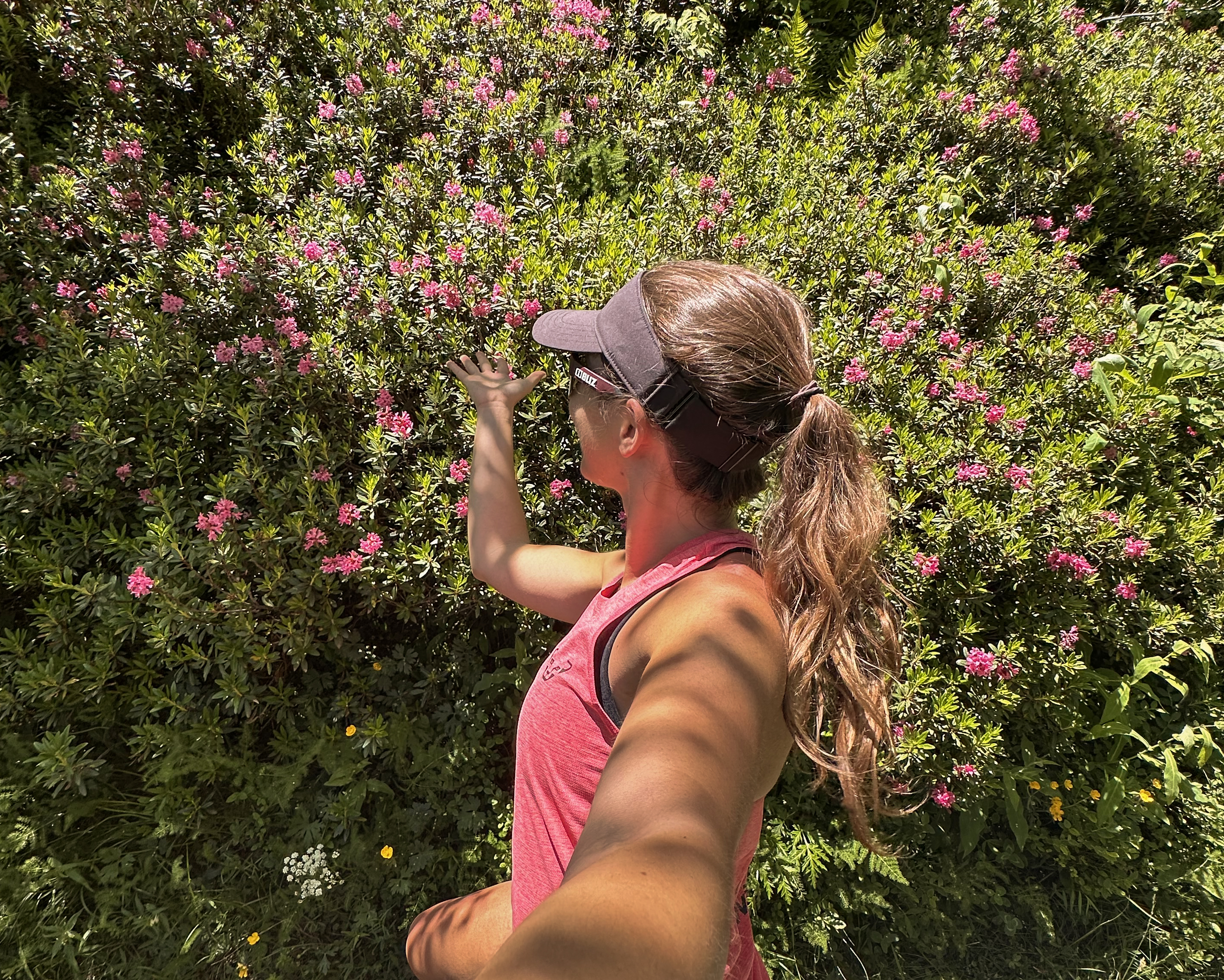 June is such a great time for this peak. The snow is mostly melted, with water sources everywhere (bring a filter), and the mountains are blanketed in pink flowers. I unintentionally matched my outfit to them. I only found out later that these are called alpine “roses”…and my abuela’s favorite flowers were roses (regular ones, but still!).
