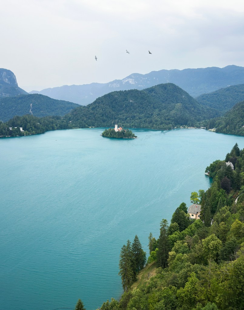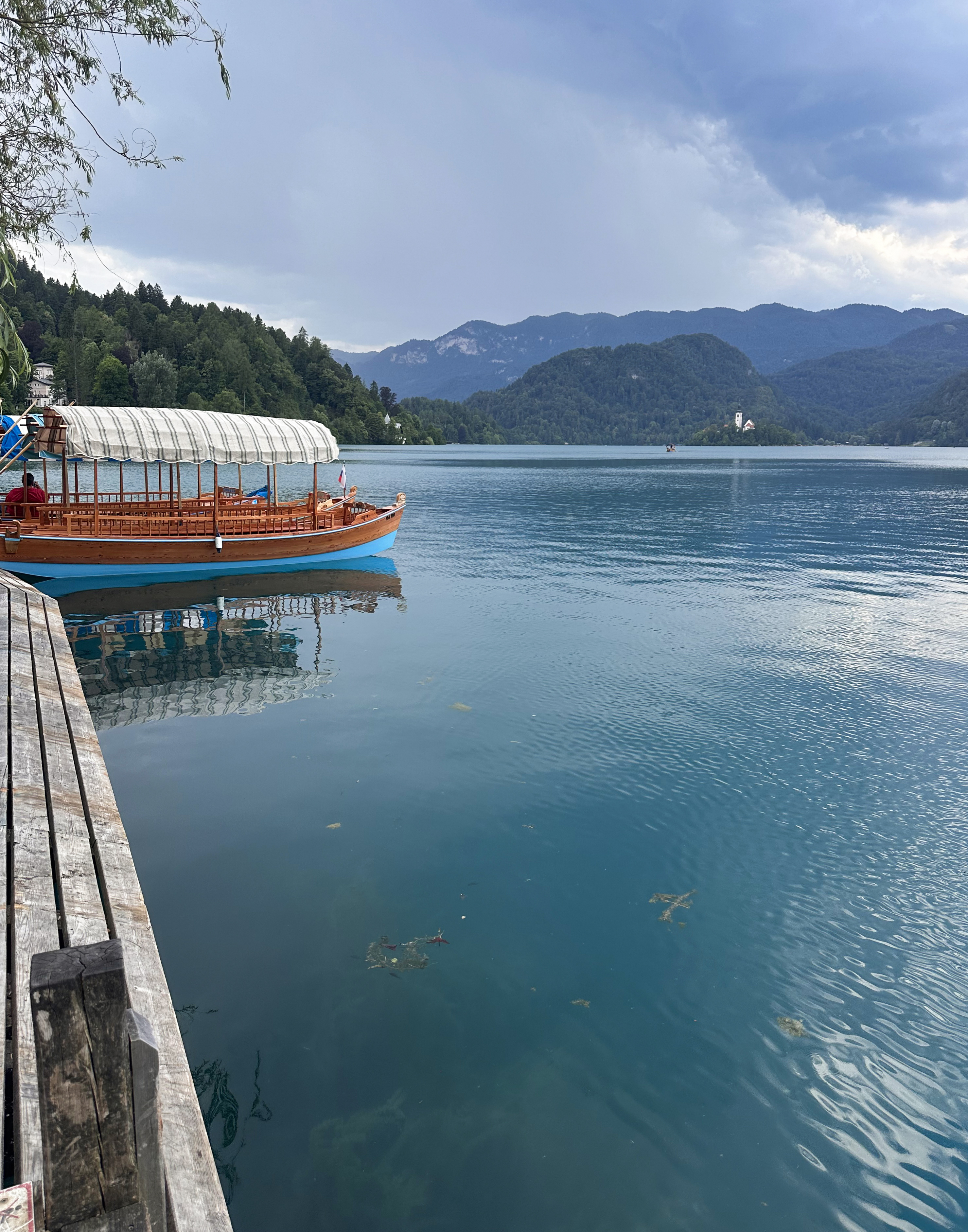 My first glimpse of the lake through my windshield was stunning, with the afternoon sun glinting off vibrant aqua, my favorite color (: However, that was short-lived. I don’t even have a photo. By the time I’d parked 10 minutes later, clouds had already rolled in. It was only 2pm, with no rain in the forecast for another few hours, so I headed out for a walk. Not long into that walk, I met some fellow Americans (also from NJ!) and chatted for a bit about different parts of Slovenia. Social weekend continued! (: