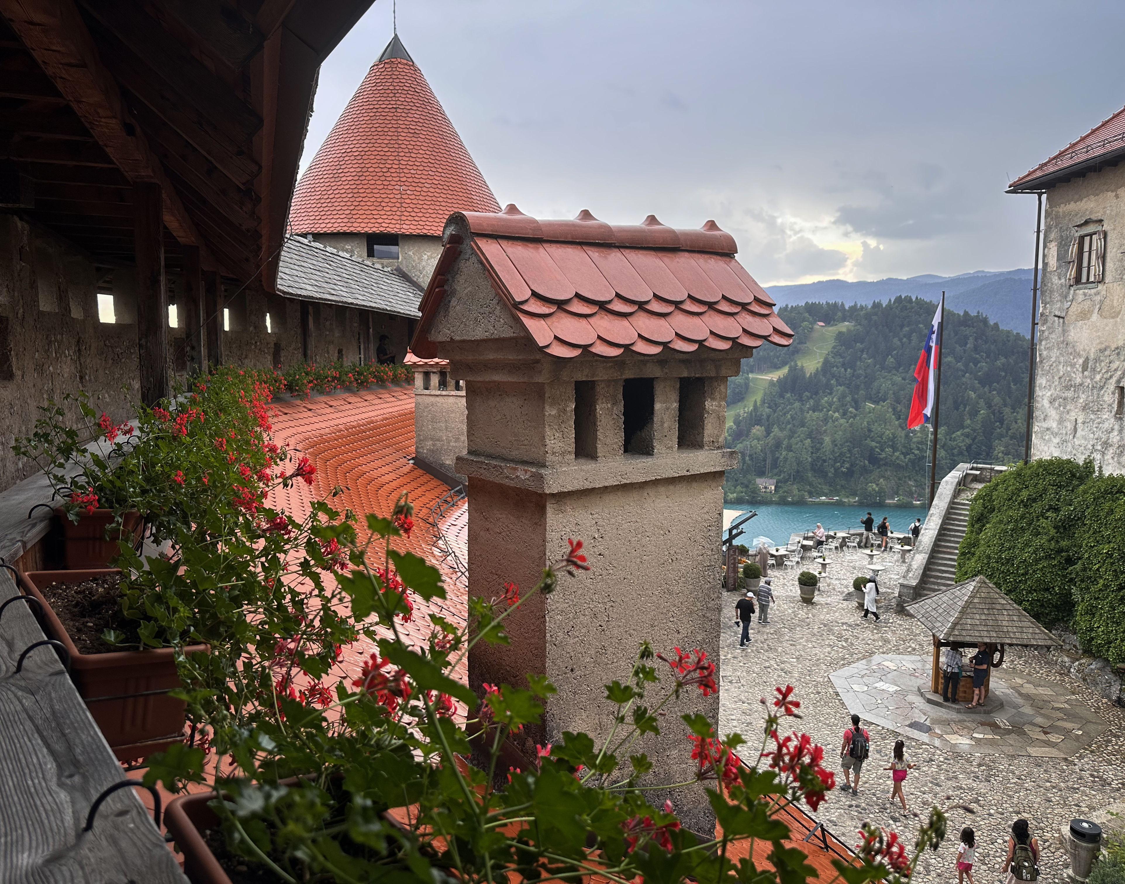 The entrance fee is a bit steep too, at 18 euros (at time of writing), but the views from up there really are nice. Bled Island is visible in the distance, and there was a beautiful wedding ceremony wrapping up as I arrived.