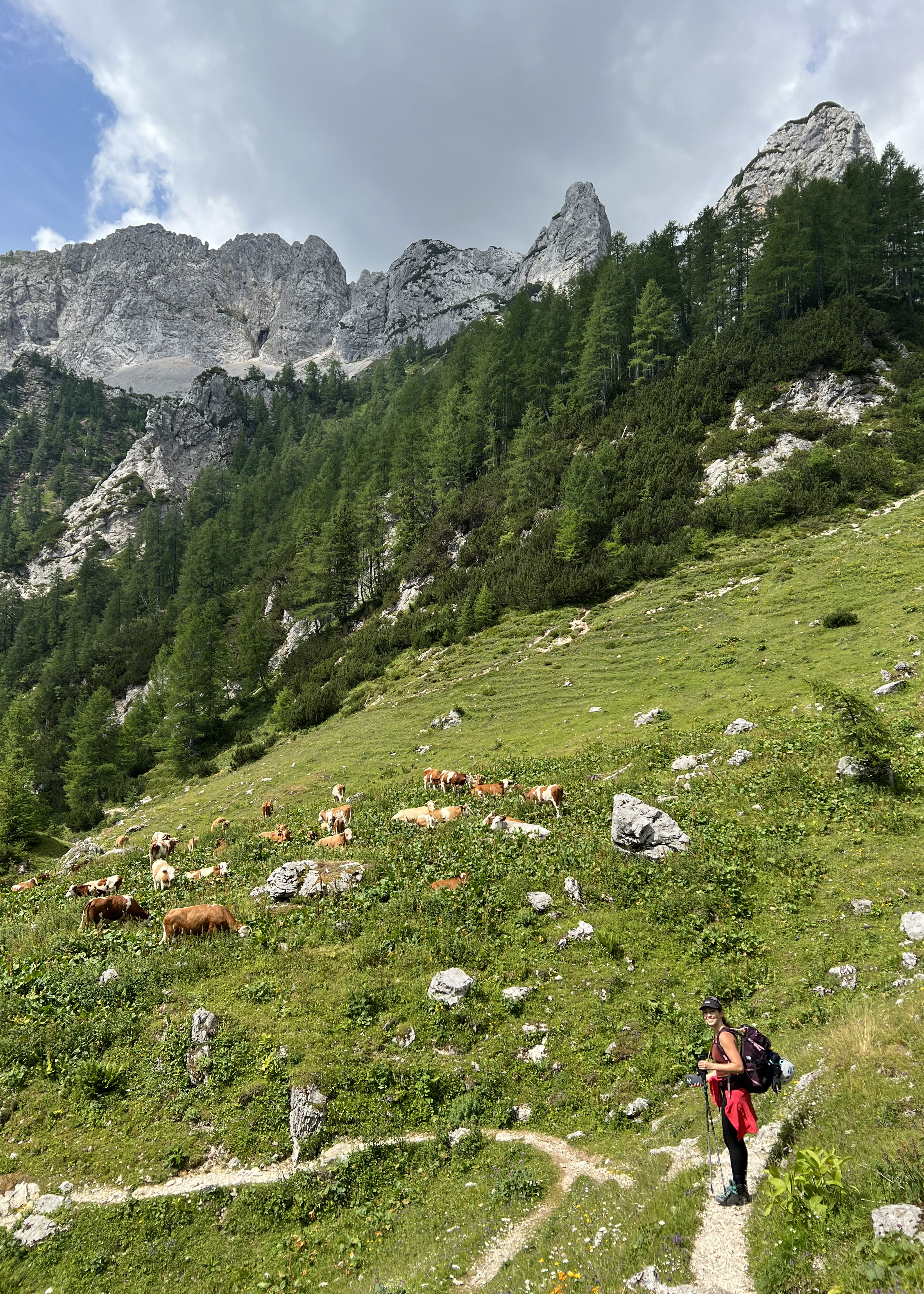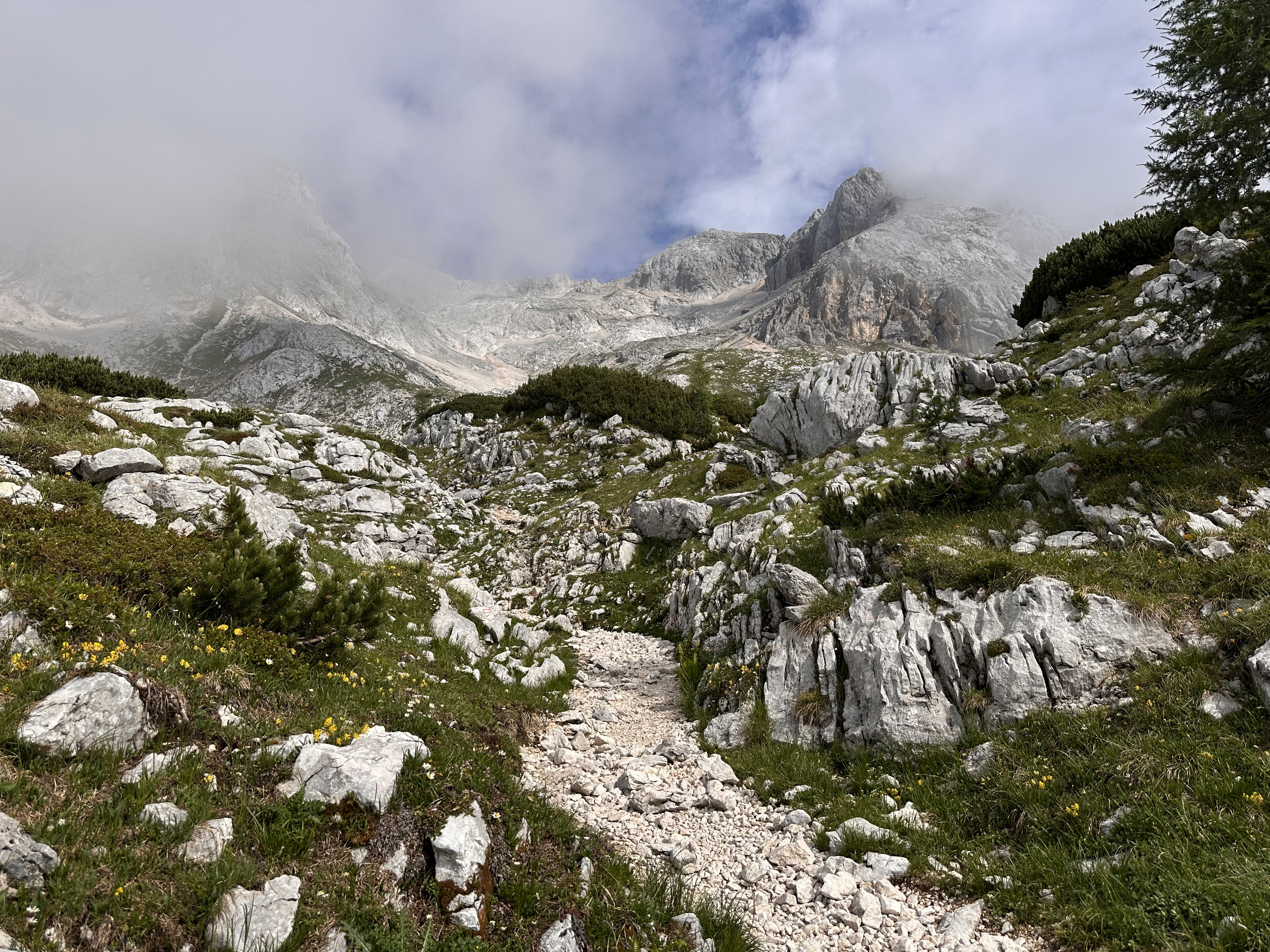 The views of Triglav don’t last long before the route drops down into the valley. Make sure to keep looking back while you can!