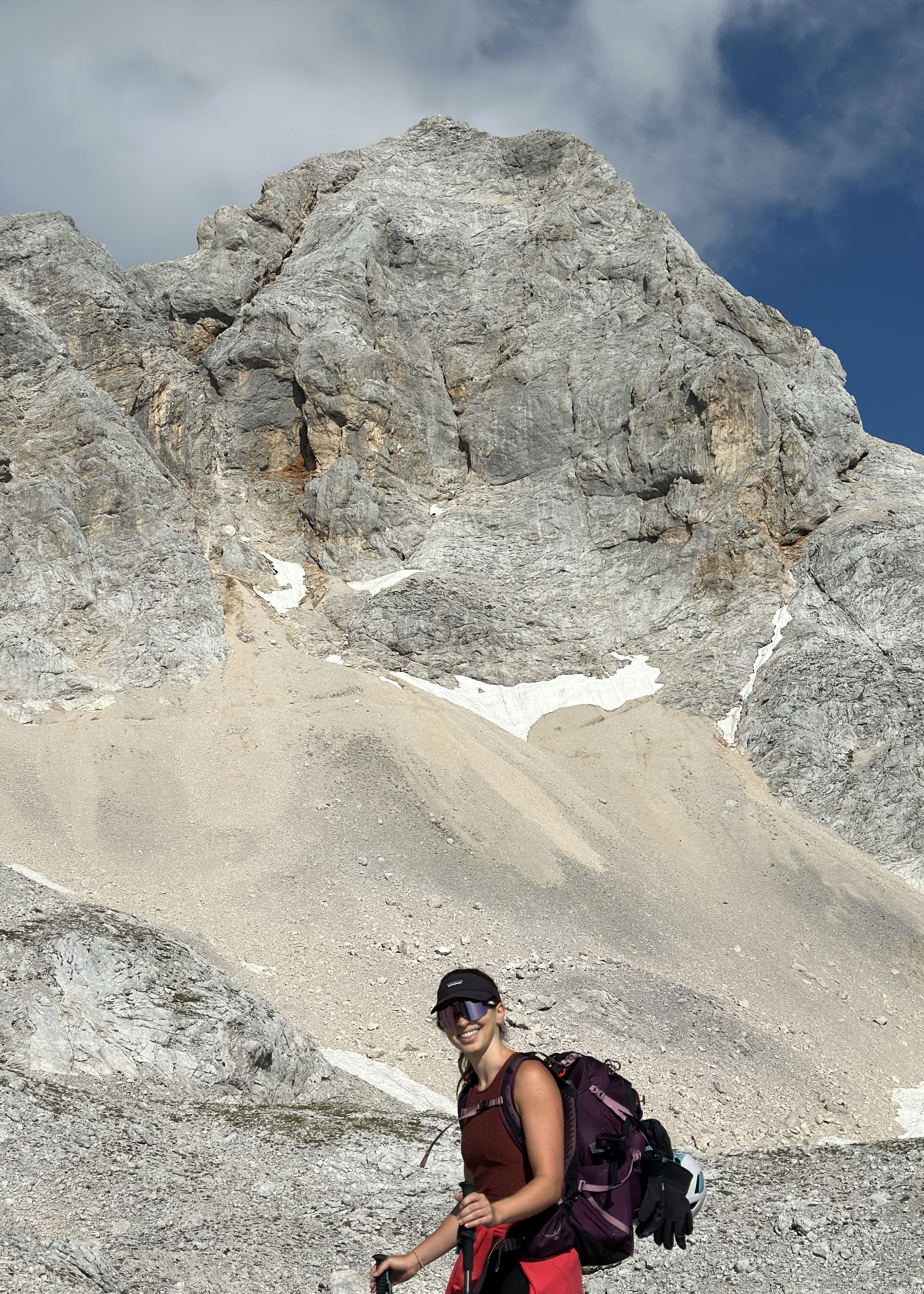 She sent me on my way with the car and some toll-avoiding advice, which involved taking a scenic route through winding mountain roads. My first time in Slovenia was in a camper van, so those roads now felt luxuriously wide! I remember seeing Triglav for the first time that autumn, framed by my favorite warm hues, thinking that I’d probably never see the views from the top. My doctor had given me a 50/50 chance of my ankle cartilage healing, and that was my first real hiking trip since the injury, so I was building up slowly. Triglav with its 2,000+ meters of required ascent to the summit seemed unattainable. Here I was, 9 months later, with the Kredarica Hut booked for the next evening (to split up the ascent…but plans would ultimately change).