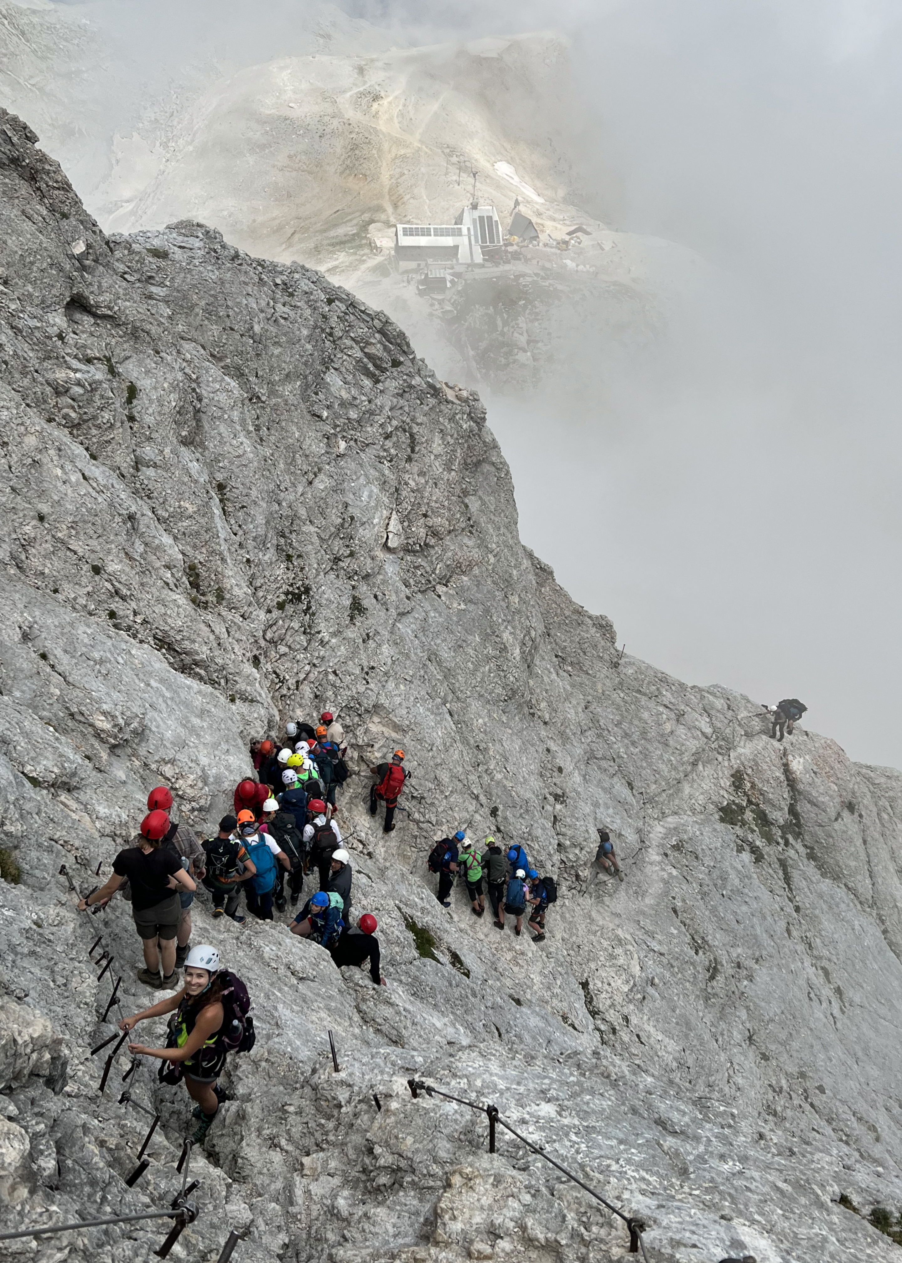 I normally would recommend going on a weekday. I suspect that it wasn’t as crowded on this particular day because of the forecast. This photo captures the only real bottleneck on the route, but it’s common on summer weekends. There are many guided groups religiously clipping through each section, making passing a bit more complicated if people in both directions are trying to stay attached.