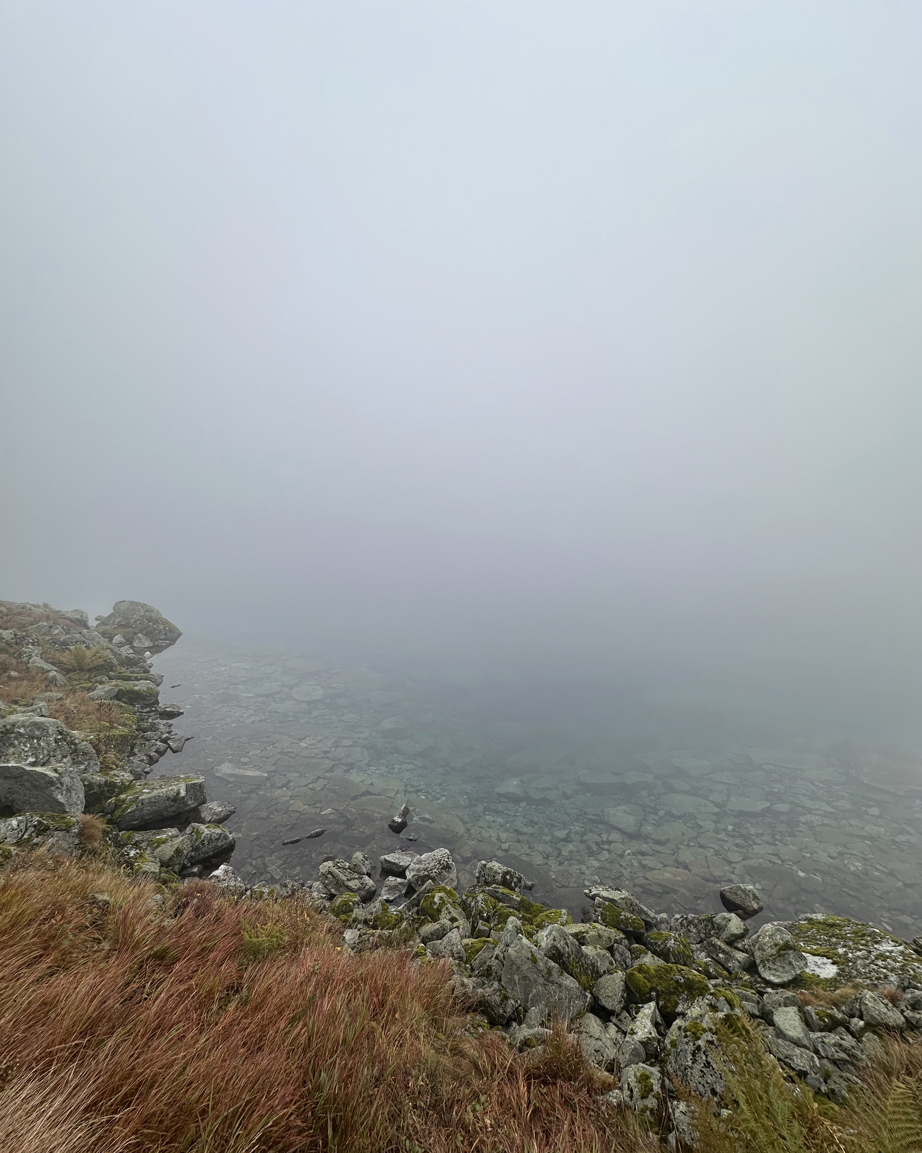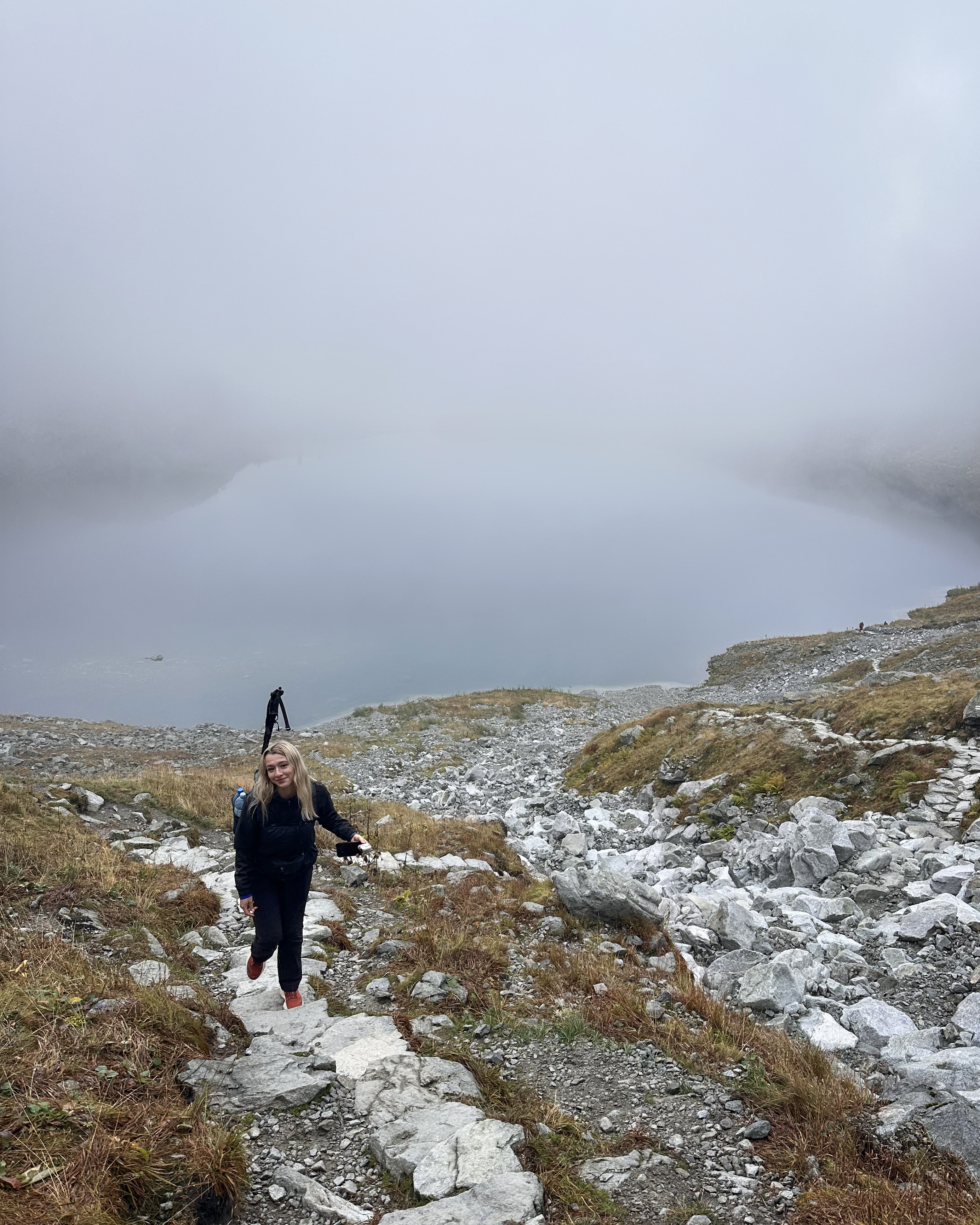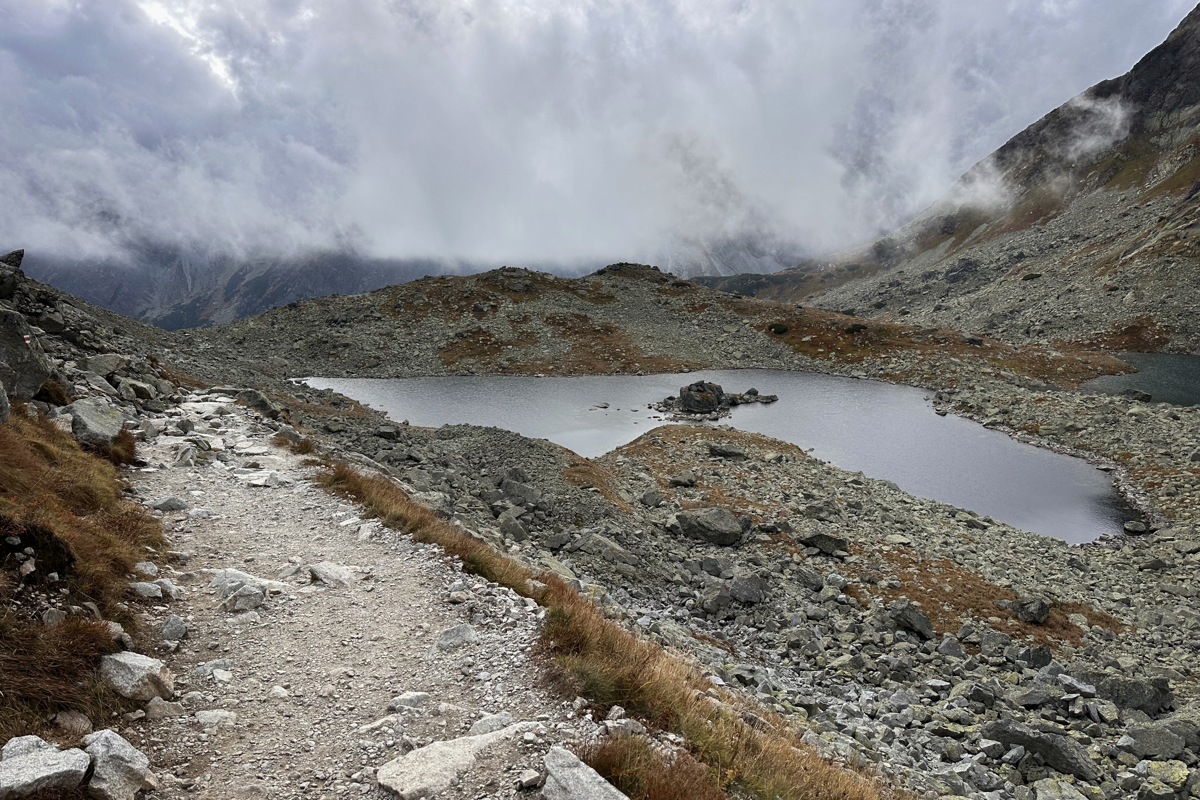 …and up to Czarny Staw pod Rysami (“Black Lake below Rysy”). As with many high mountain ranges, conditions can change quickly. Soon, we were in the clouds above that second lake.