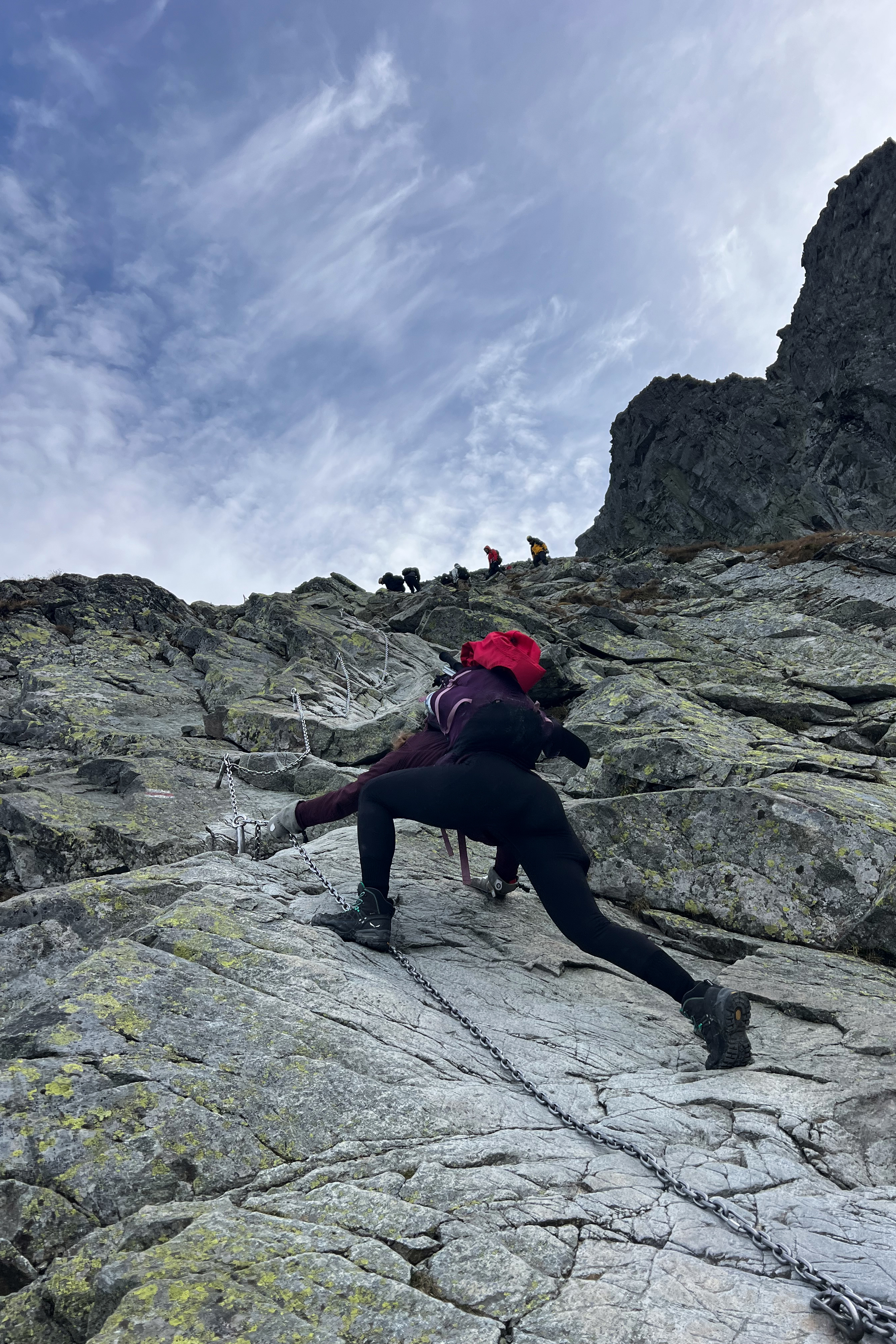While the Slovak side is known to be significantly easier than our ascent route, it’s no stroll, especially not with such large packs. There is a section with chains and a steep ladder, which is shown in my Instagram highlights and that nosič video! I was on this mountain in perfect conditions, but they head up even on snowy, icy days. It’s the only way the hut can operate.