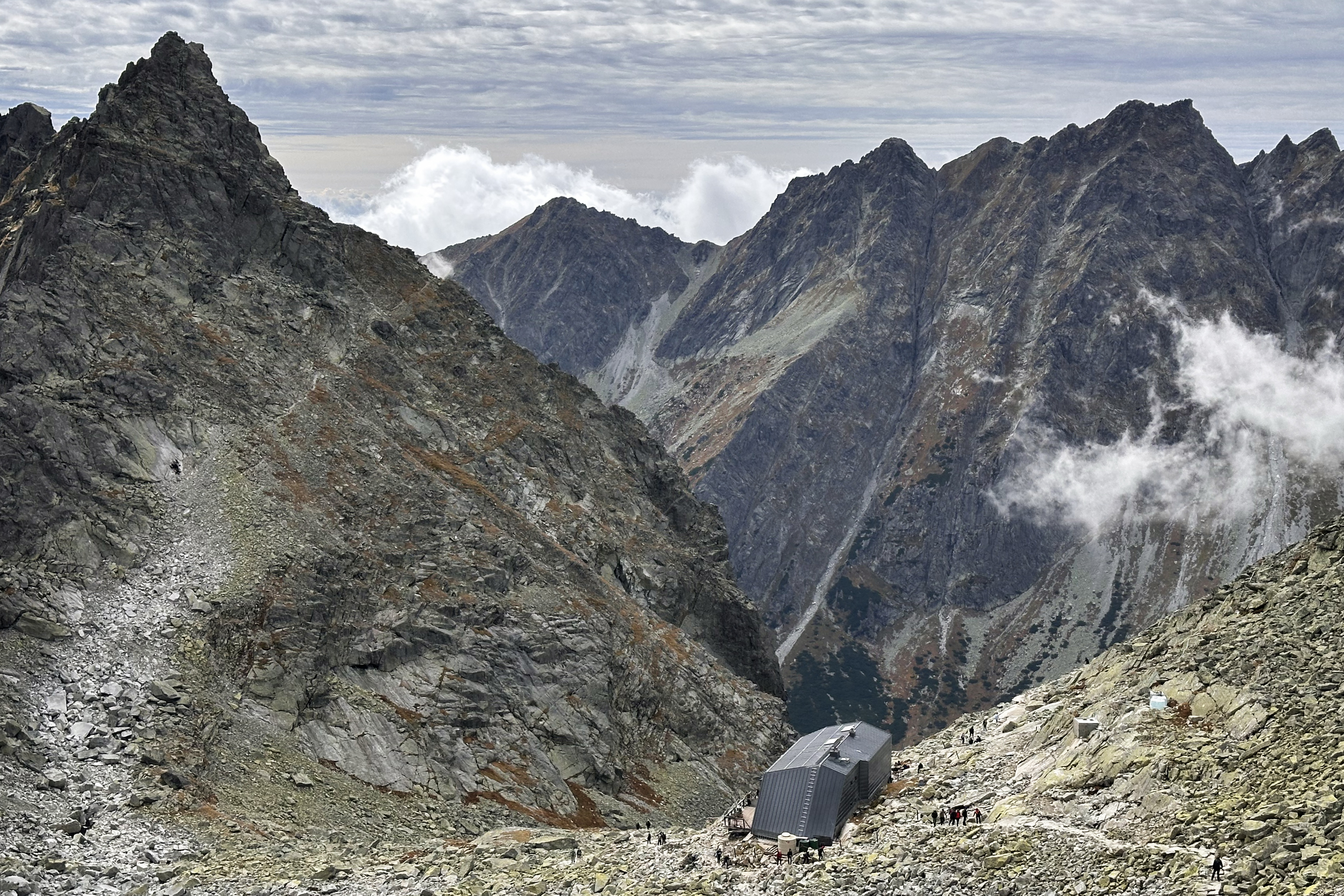 Less than an hour down the mountain, on the Slovak side, was Chata pod Rysmi (“Hut under Rysy”), the highest mountain hut in the Tatras. We stopped for a hot lunch and to use the nearby facilities (toilet with a view).