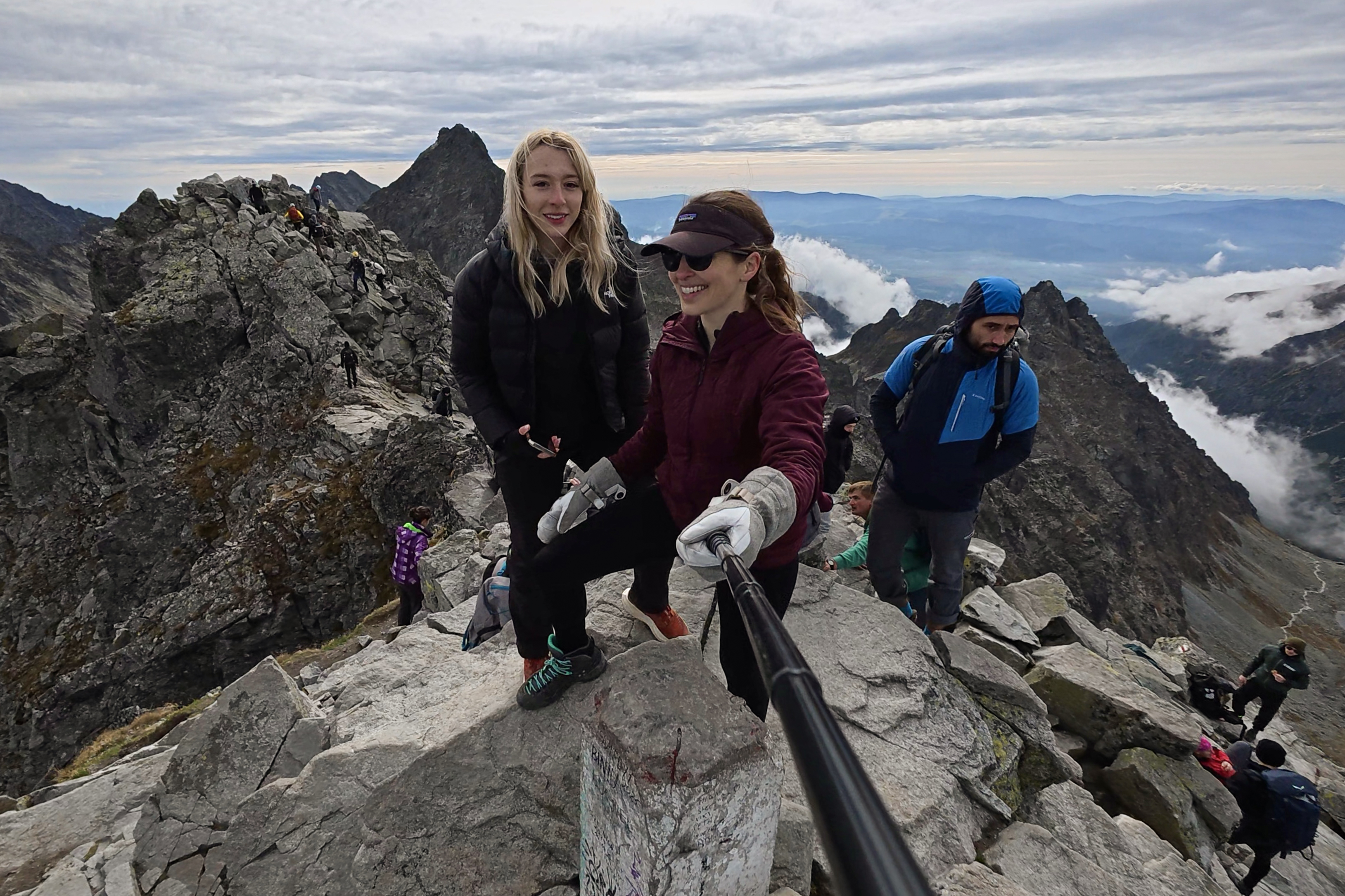 Rysy has twin summits, one in Poland and one in Slovakia. It doesn’t count for both countries, unfortunately, because Gerlach in Slovakia is higher. That one is actually the highest point of this whole mountain range, and it’s visible from Rysy! We didn’t stay long on the Polish summit…it was a tad crowded, if it wasn’t obvious from the summit photo at the top of the post. The Slovak summit has a great view of it, though. (: