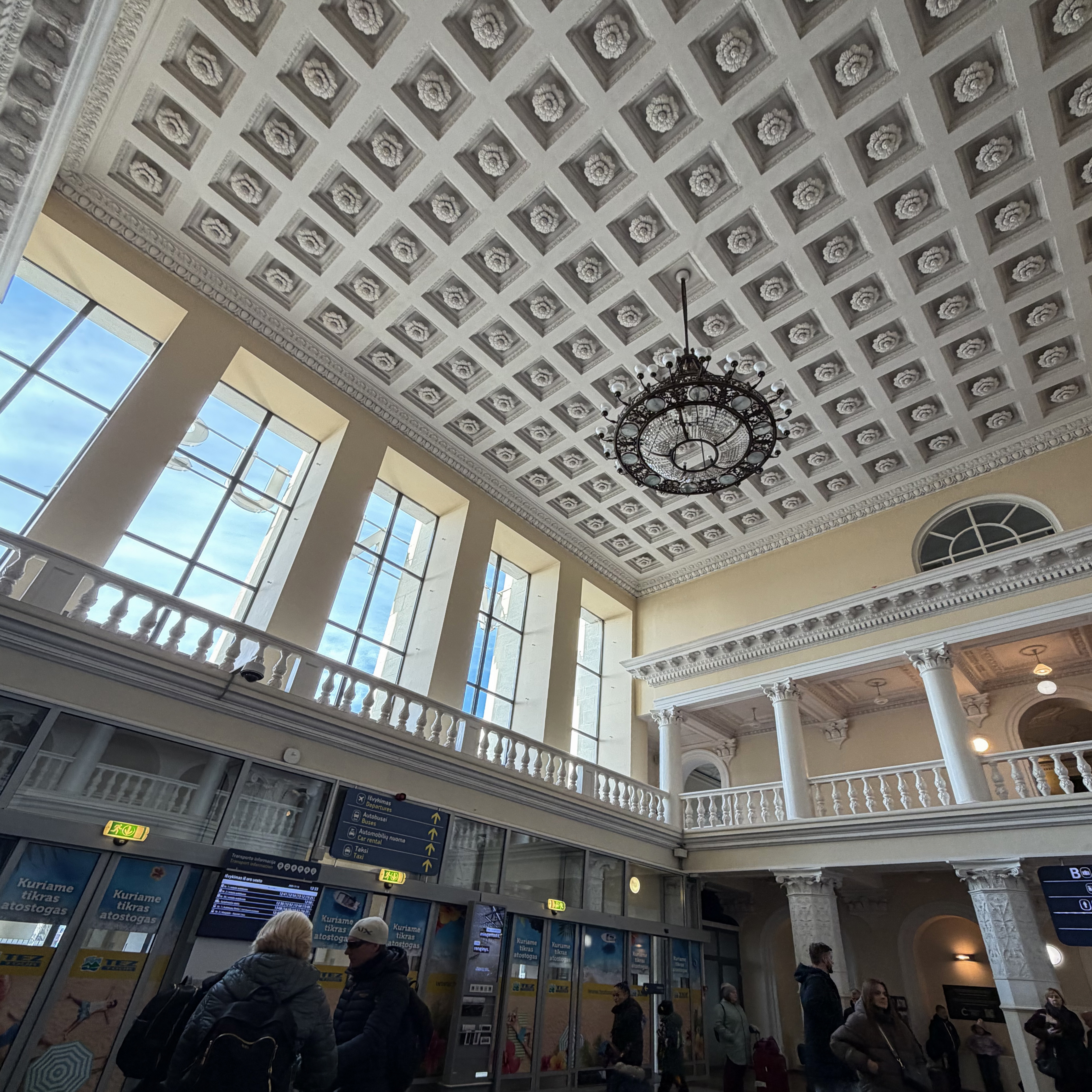 The arrivals hall felt more like a train station, and there’s a reason for this! It was built in 1954, while part of the Soviet Union (as it was until 1990). It’s been expensive to maintain, and there is discussion around tearing it down, as it’s half the cost of trying to preserve even parts of it as they expand the terminal’s capacity. Currently, it’s listed on Lithuania’s Cultural Heritage Register. If you want more details on this airport and the controversy around the building itself, there’s a 5-minute YouTube video covering it by Lithuania Explained!