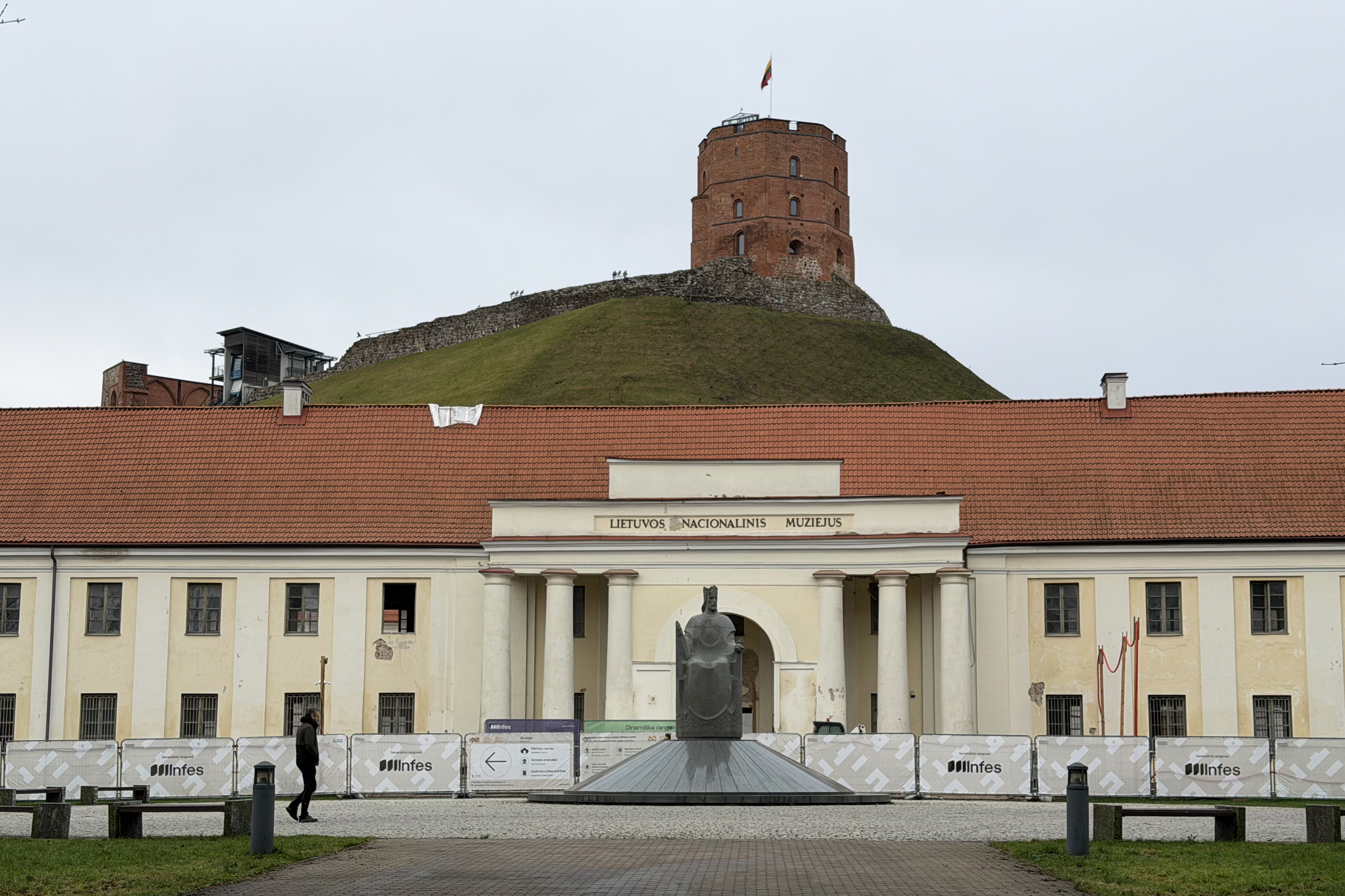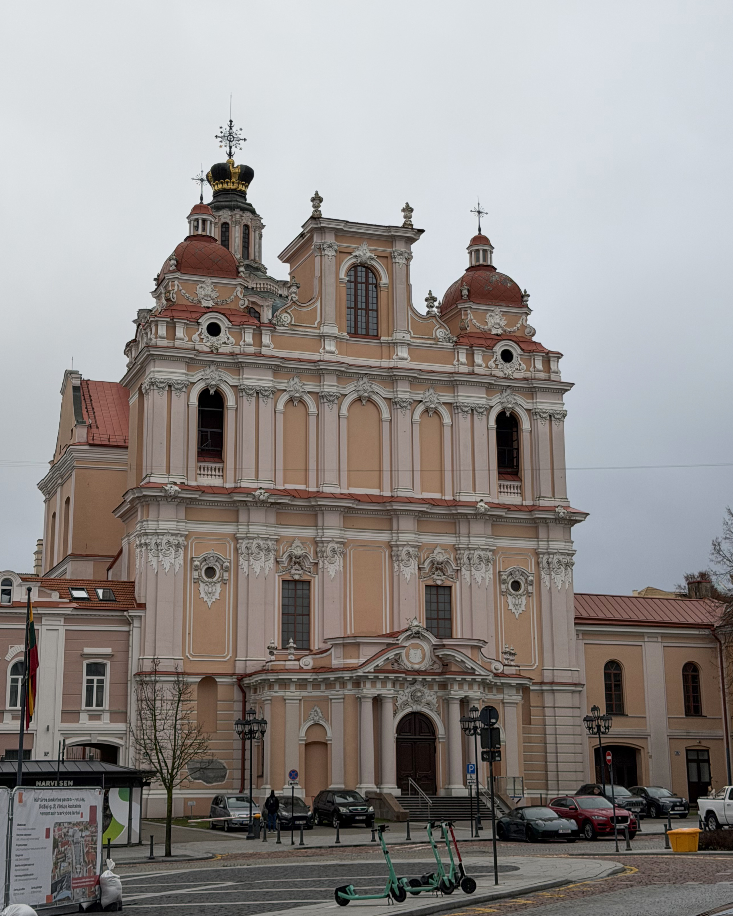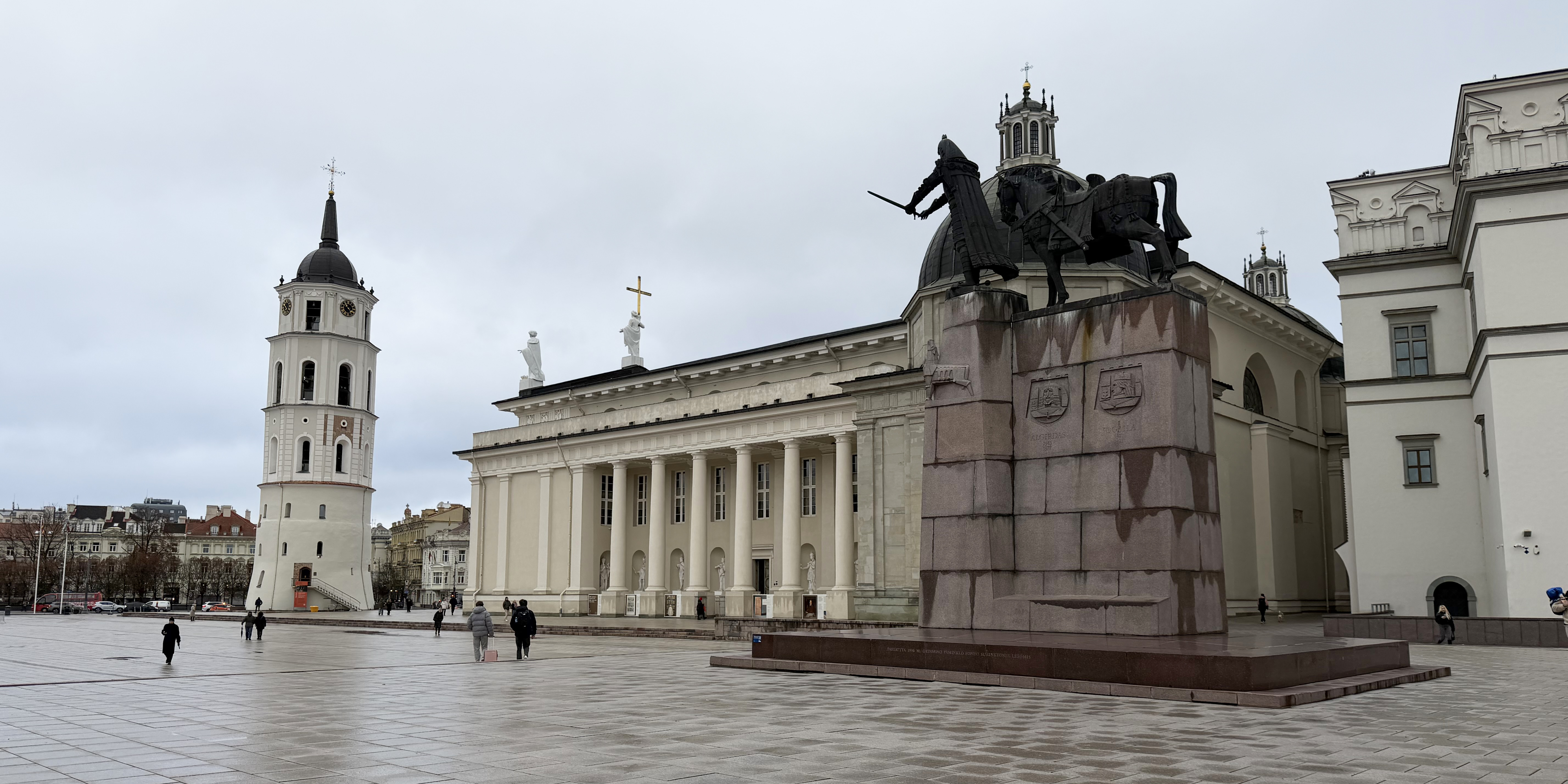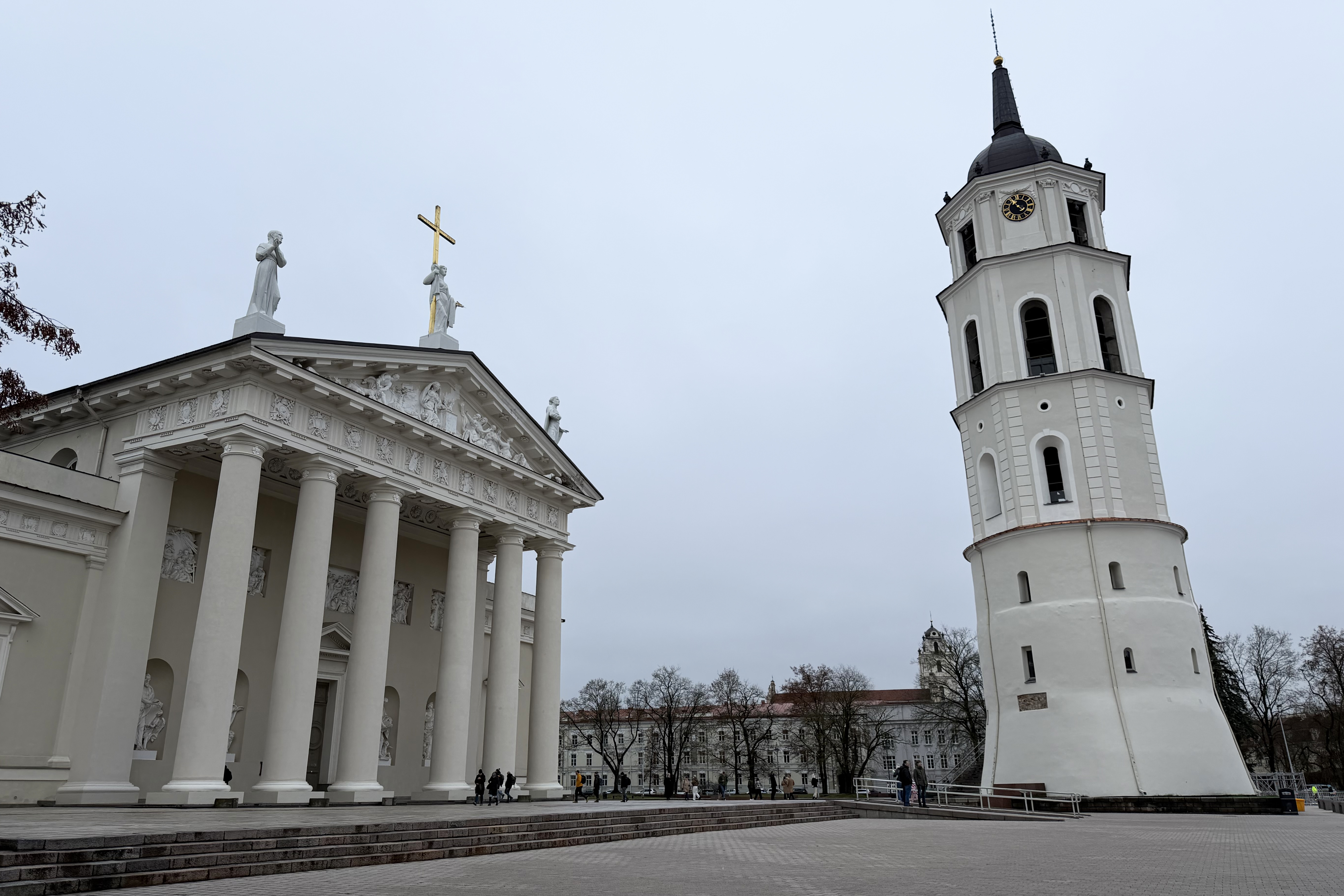 The three sculptures lining the roof of the cathedral depict St. Helena, St. Casimir, and St. Stanislaus. These are the patron saints of Lithuania and were only added to it in 1996! There’s a nice view of them from the bell tower, with Castle Hill in the background.