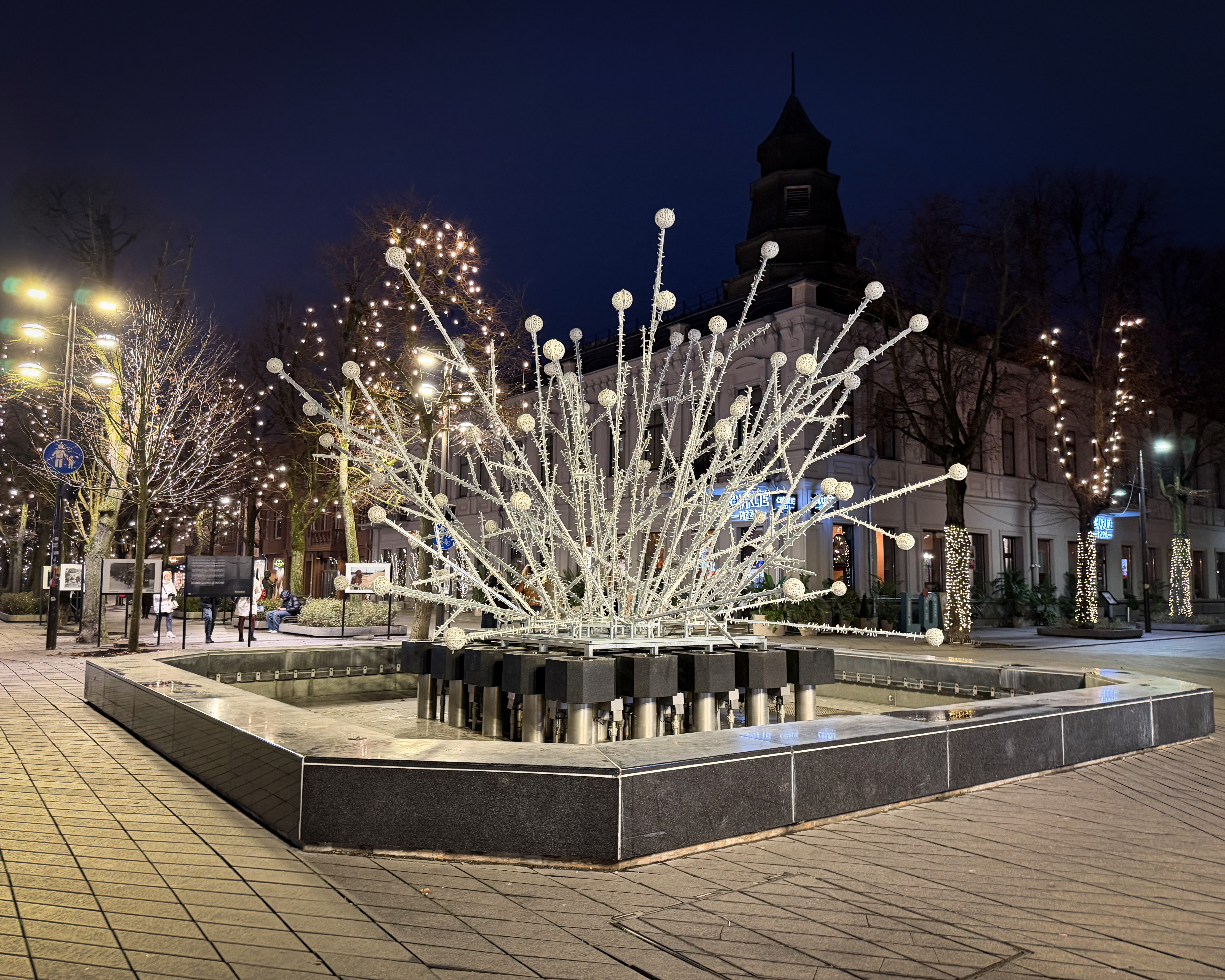 The walkway to it along the Laisvės alėja, dotted with trees and fountains decorated for Christmas, made it even more magical. The Laisvės alėja is the main pedestrian walkway of the city.