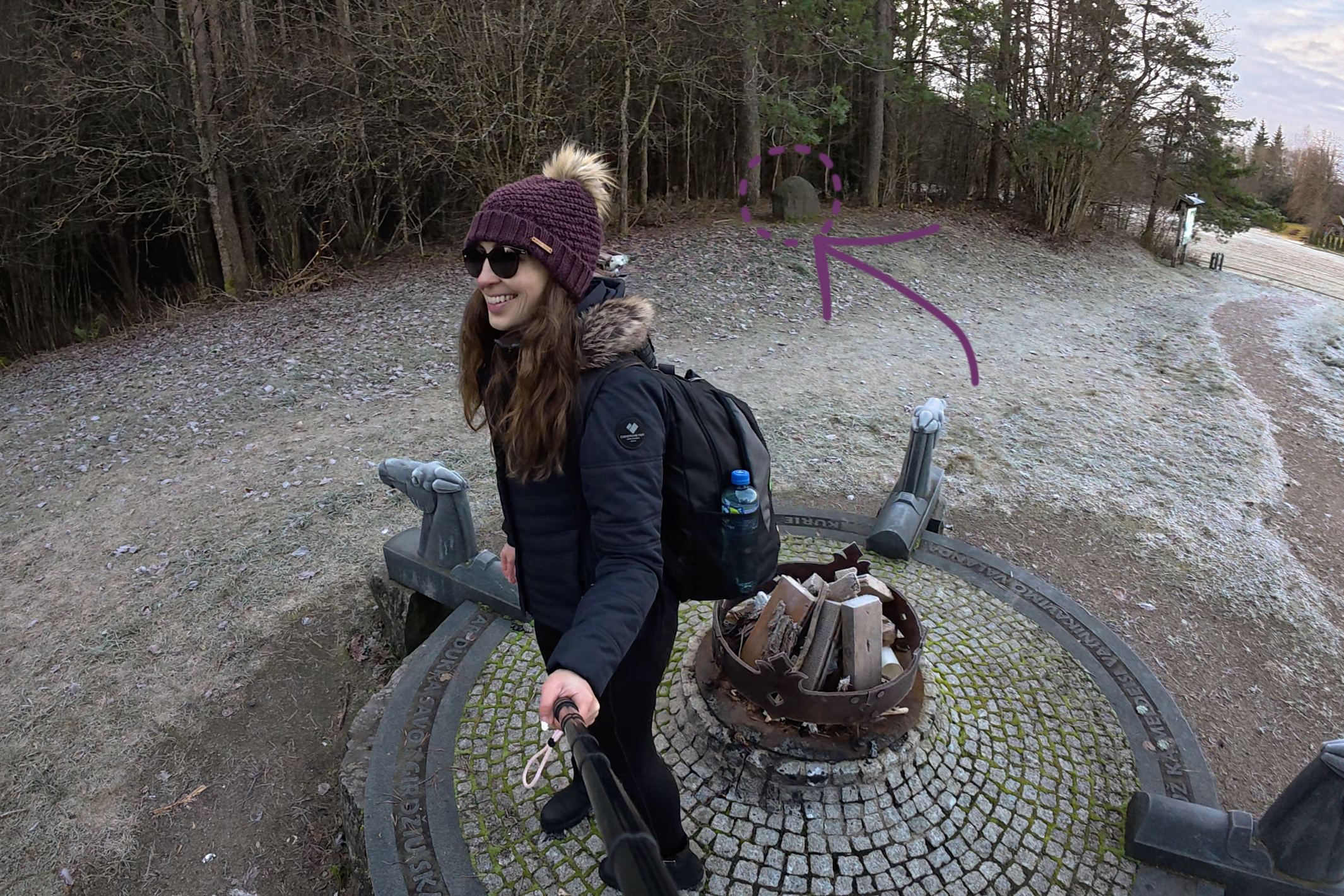 On the way out, I walked around to the other little markers around the tower, including the Balts’ Sun Circle shown below. It was completed in 2012, includes 4 granite horse heads, and symbolizes the history, faith, and folk art of ancient Lithuania.